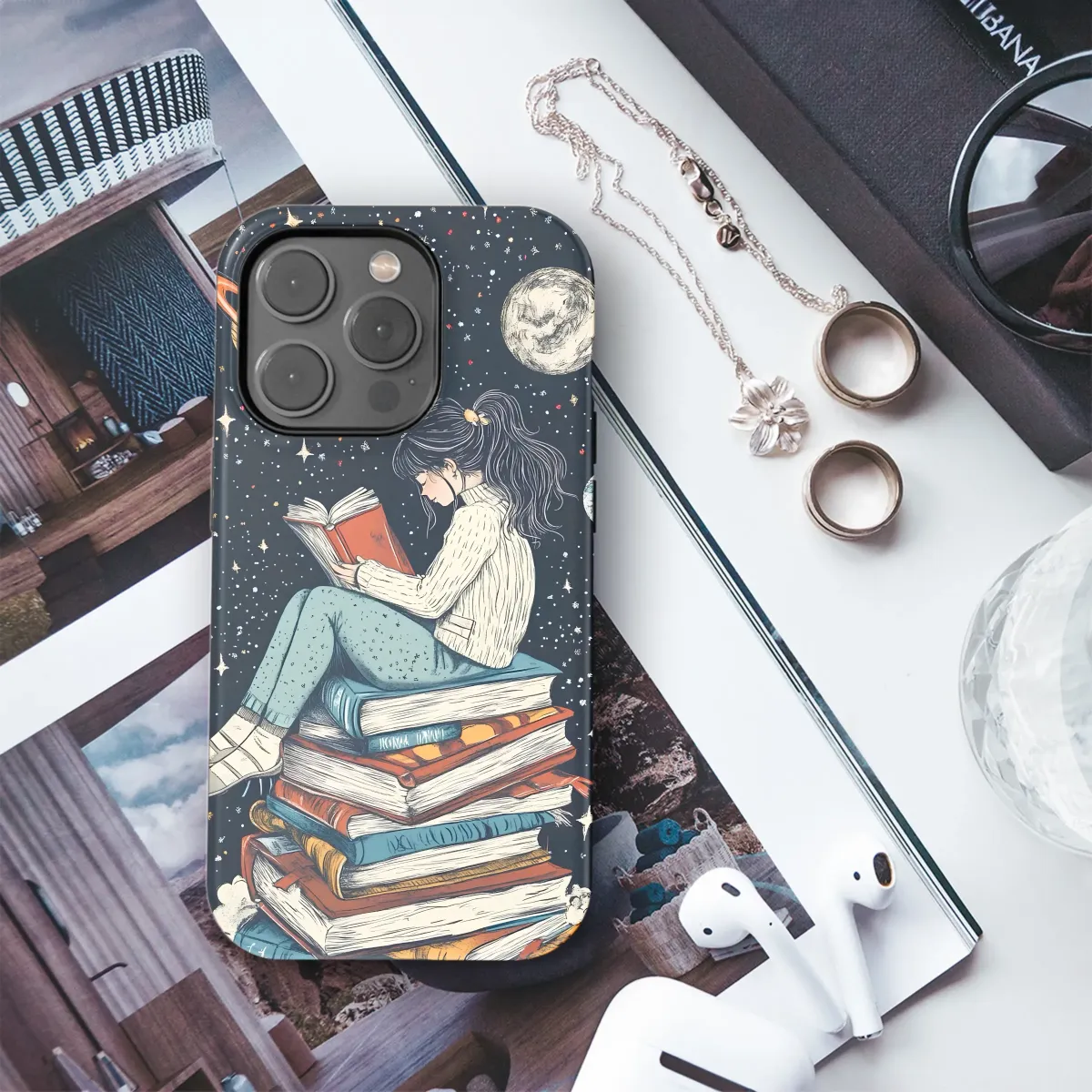 Cosmic Bookworm Whimsical Illustrated Galaxy Art Phone Case Cover for iPhone 17 Pro Max 16 15 13 Samsung S25 S24 Pixel 8240