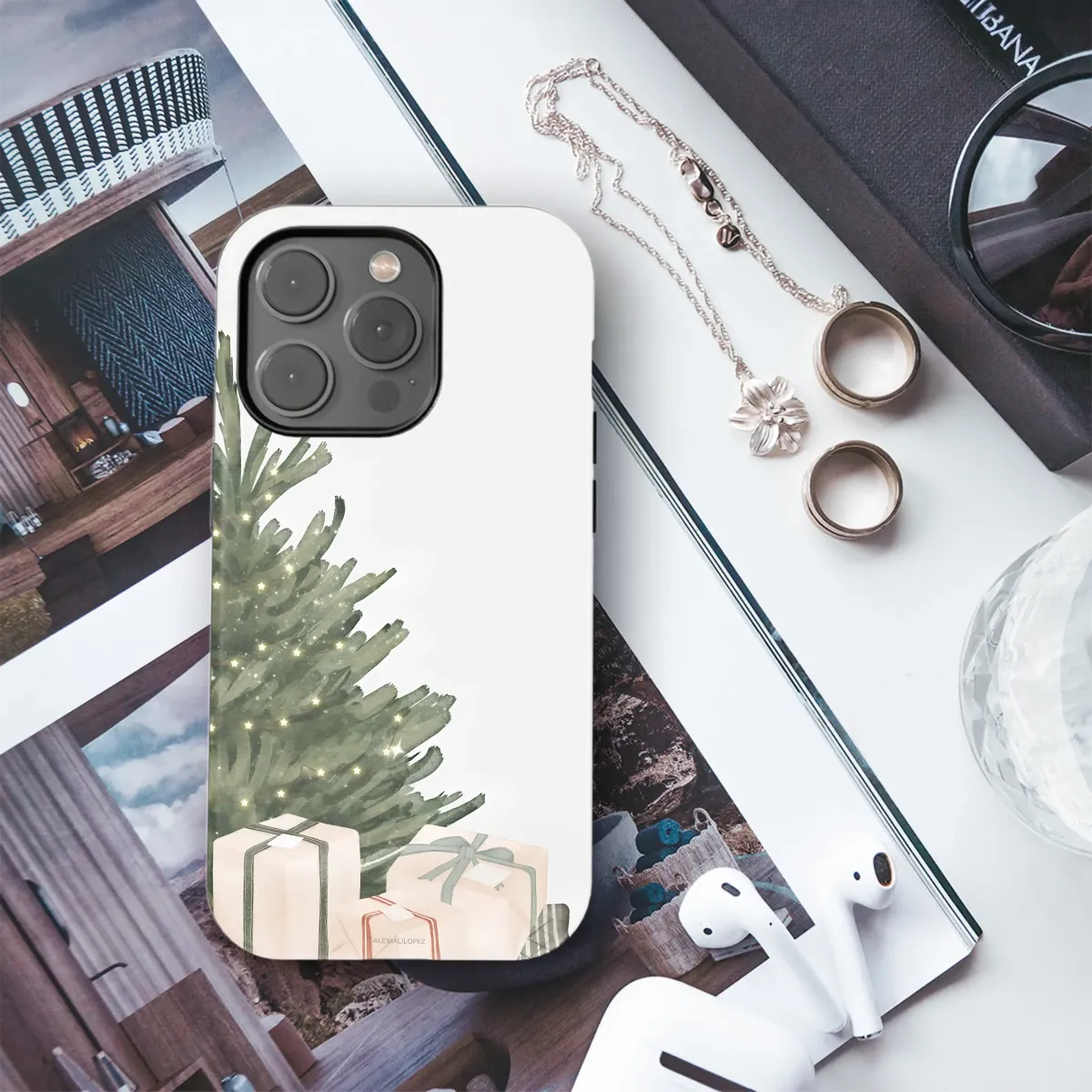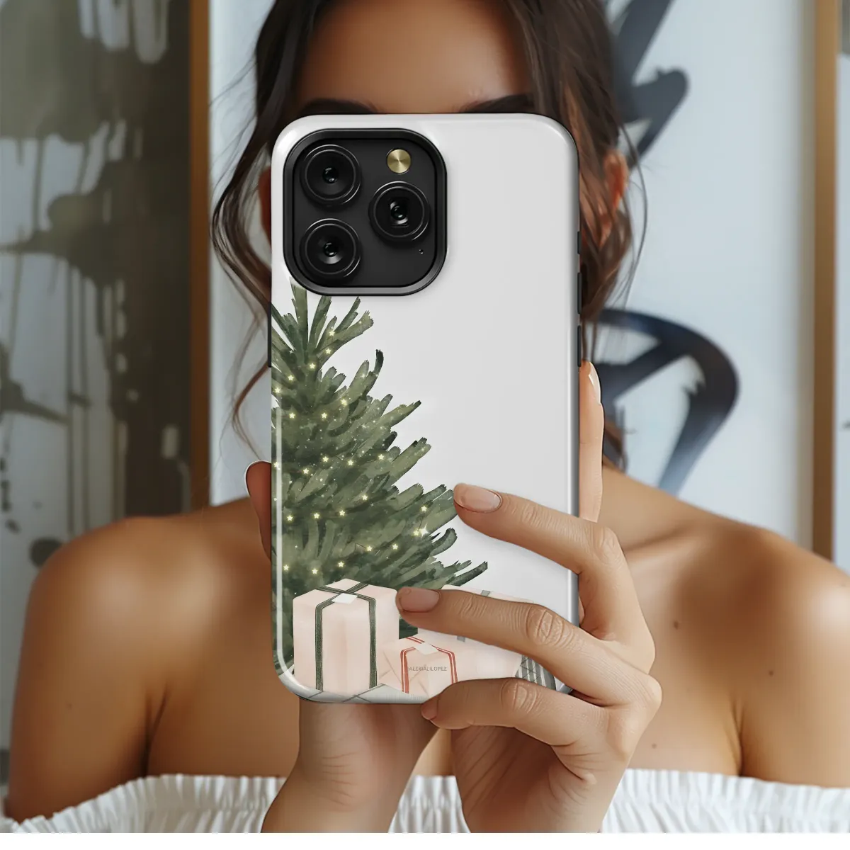 Step into the quiet magic of a Christmas morning with this enchanting watercolor design. The soft, painterly strokes bring a majestic evergreen to life, its branches adorned with a delicate string of glowing, star-shaped lights that twinkle with warmth and nostalgia. Nestled at its base, a collection of beautifully wrapped presents awaits, tied with elegant ribbons, hinting at the joy and surprises of the holiday season. This artwork captures the serene, heartwarming spirit of winter, transforming your everyday essential into a piece of festive art. It’s a perfect way to carry the cozy hygge feeling and the anticipation of holiday celebrations with you wherever you go. Whether you're treating yourself or searching for a thoughtful stocking stuffer or Secret Santa surprise, this design is a beautiful reminder of the most wonderful time of the year, wrapping your device in the gentle embrace of holiday cheer and artistic charm. Let this little piece of winter wonderland brighten your day and keep the festive spirit close.