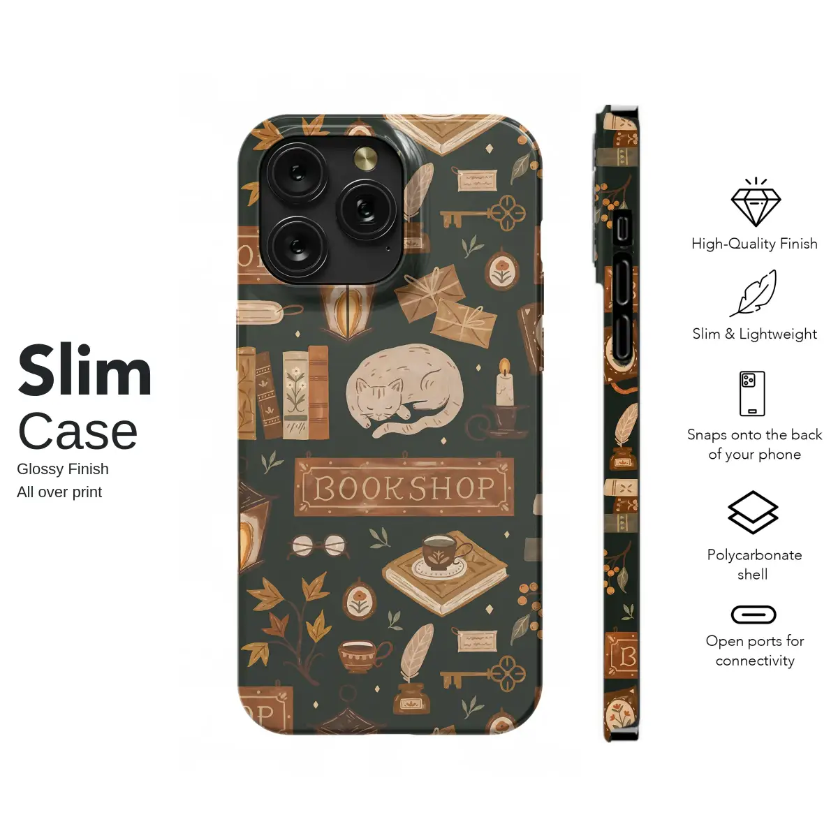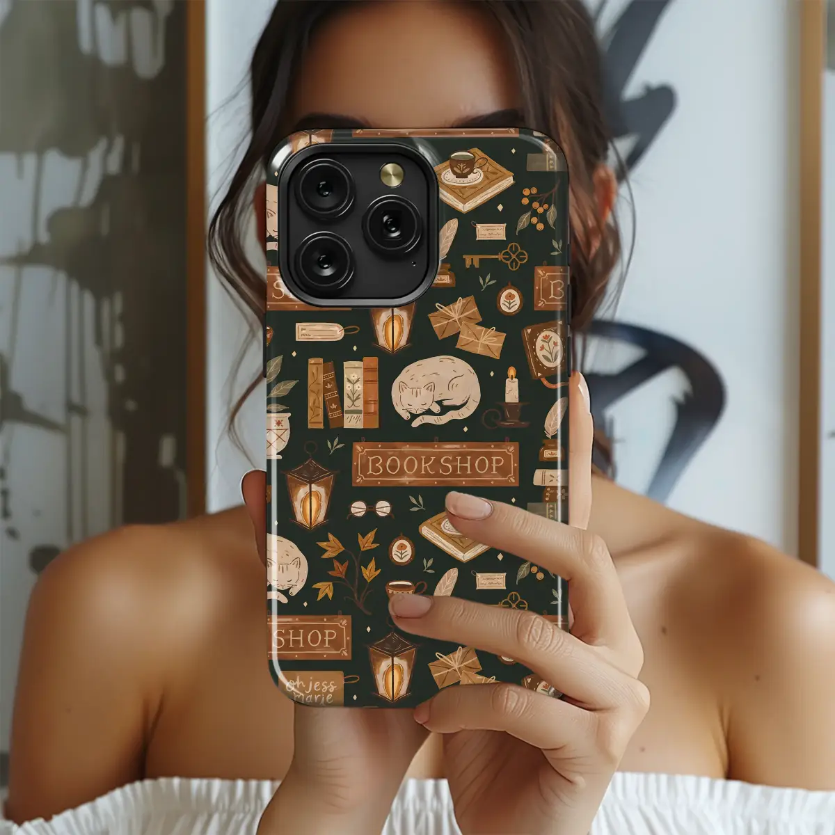 Cozy Reading Nook with Sleeping Cat Dark Academia Pattern Phone Case Cover for iPhone 17 Pro Max 16 15 13 Samsung S26 S25 Pixel 9912