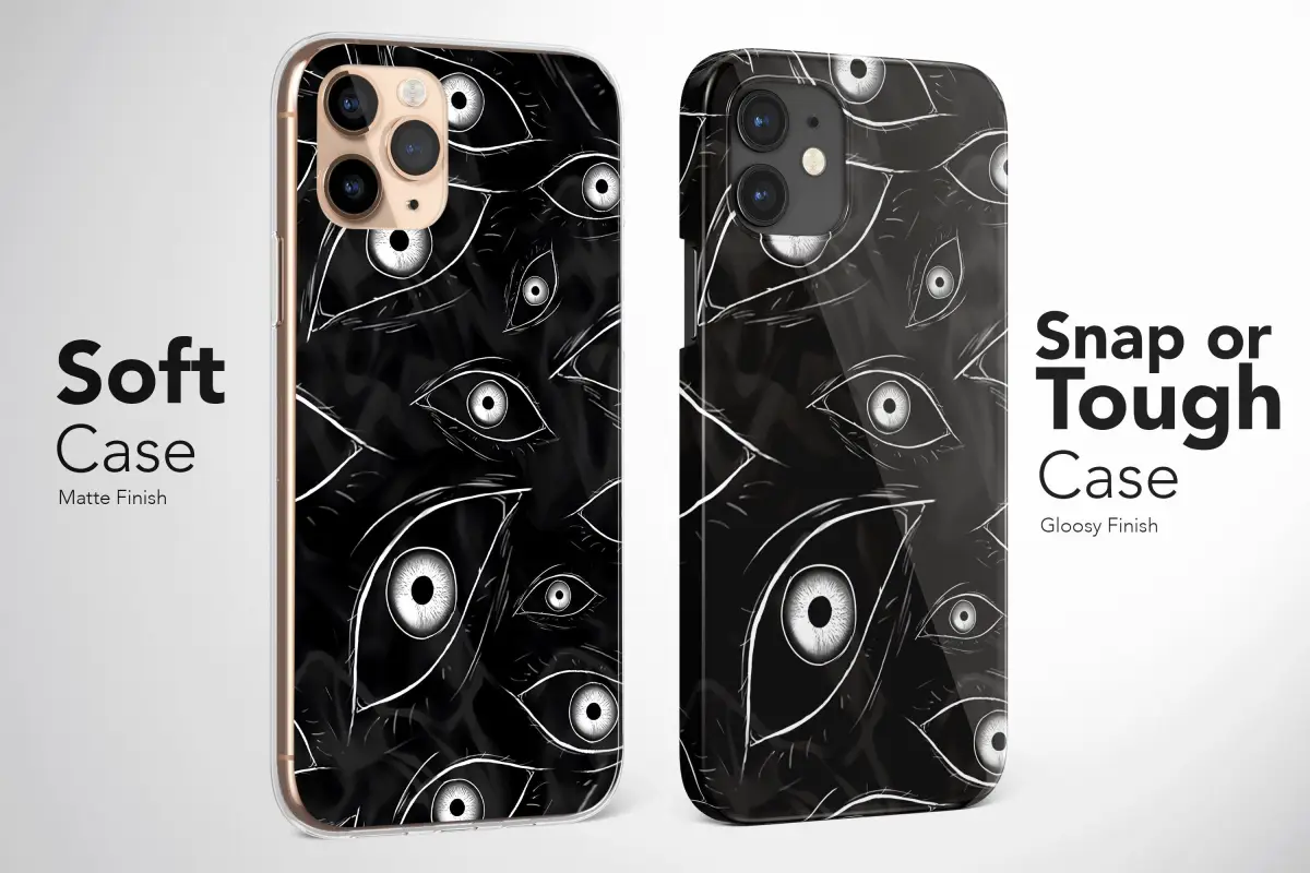 Add a touch of gothic horror to your phone with this Creepy Gore Eyes Phone Case. The dark black design featuring unsettling eyes is perfect for those who love all things witchy and macabre.