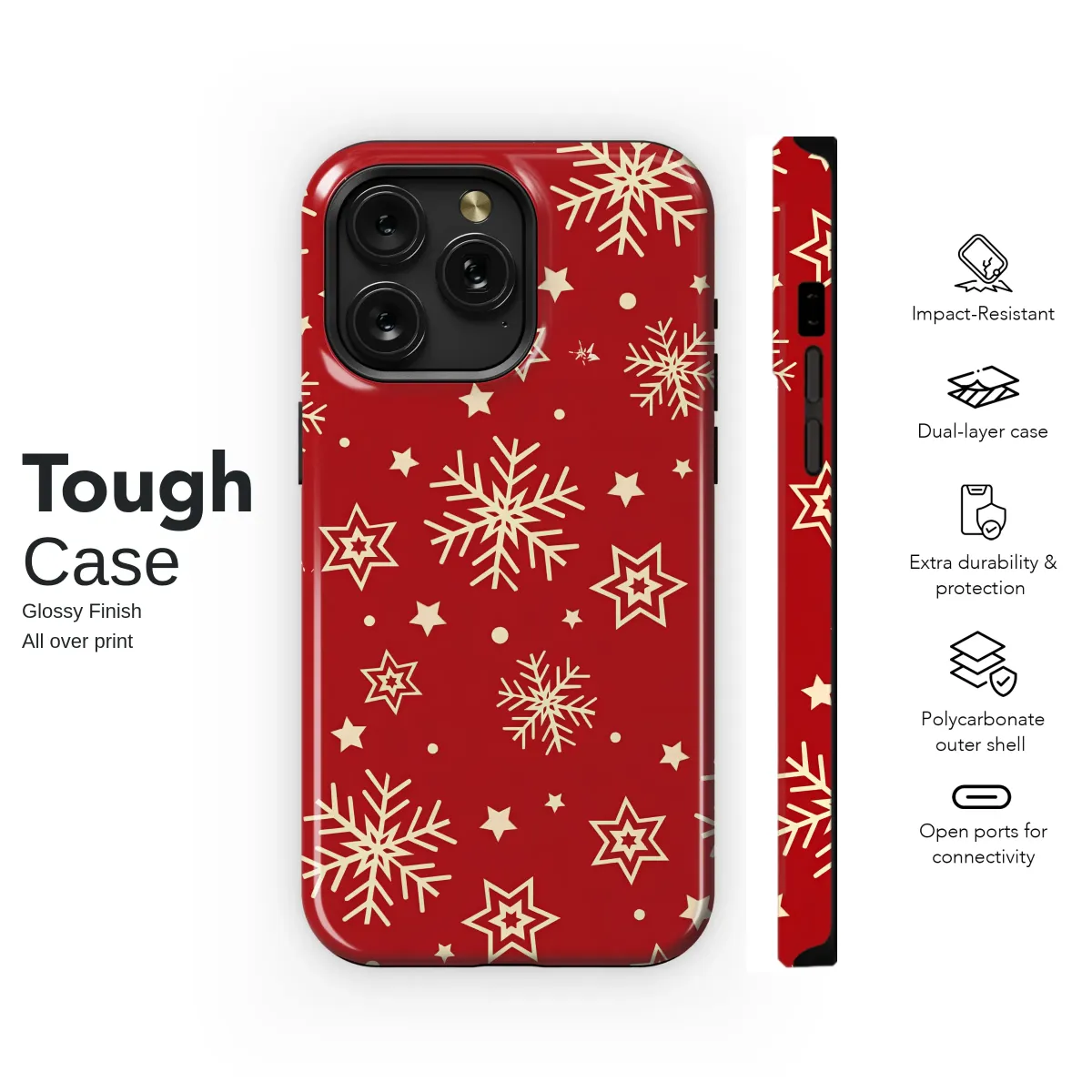 Crimson Winter Snowflake Star Design Phone Case iPhone Samsung Cover Pixel 8027 - Image 1