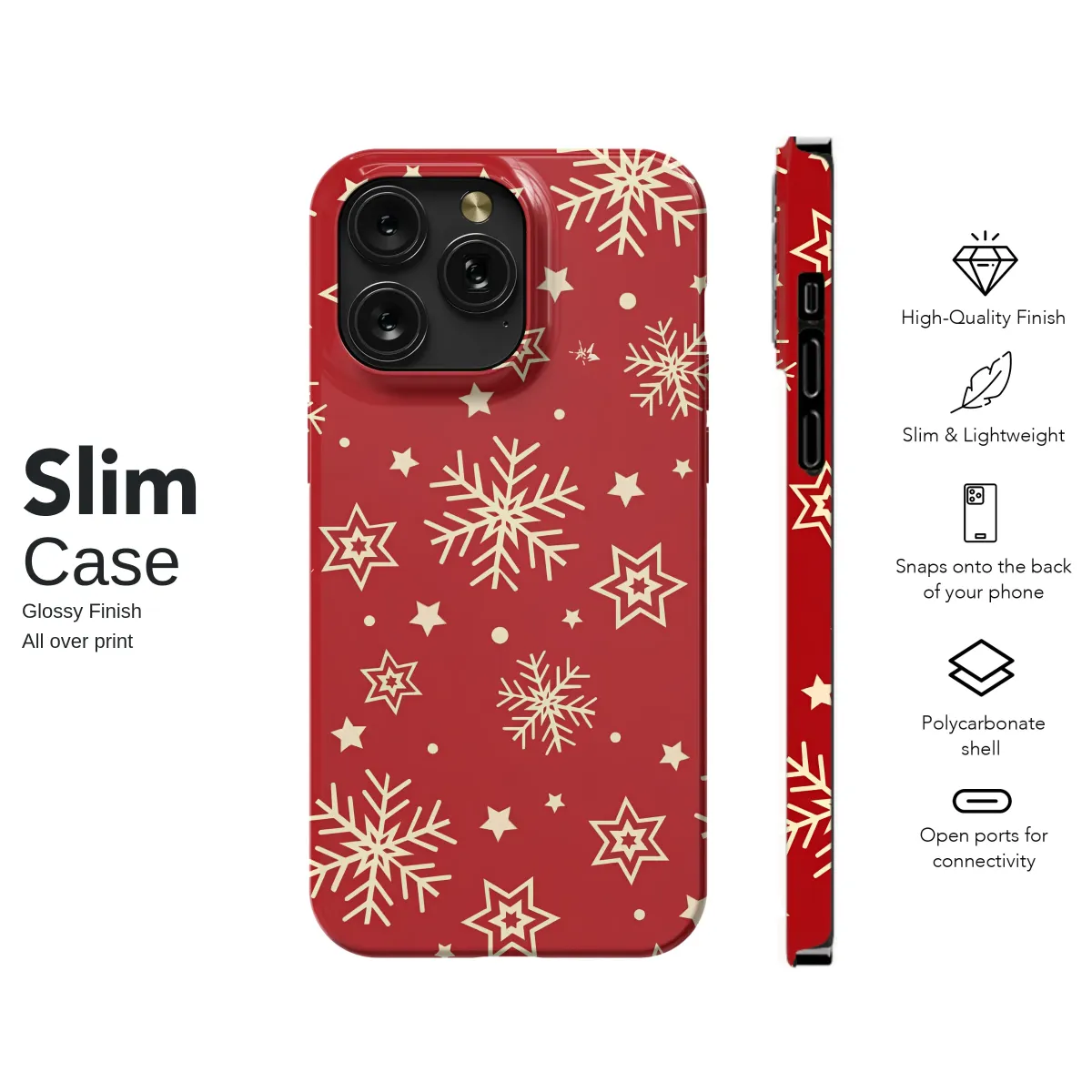 Crimson Winter Snowflake Star Design Phone Case iPhone Samsung Cover Pixel 8027
