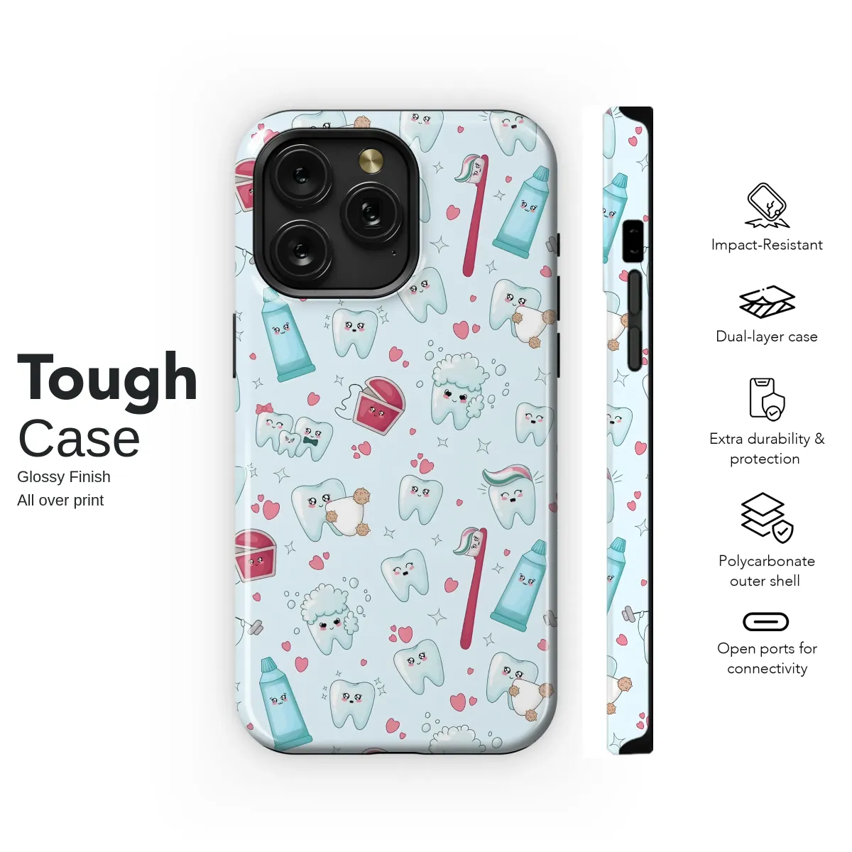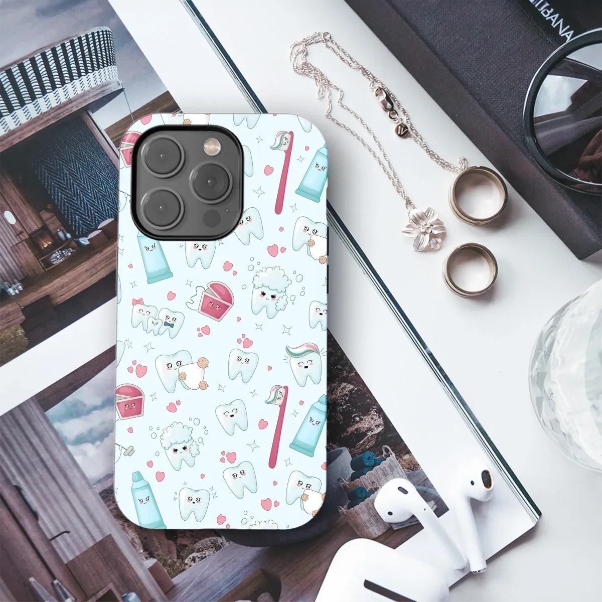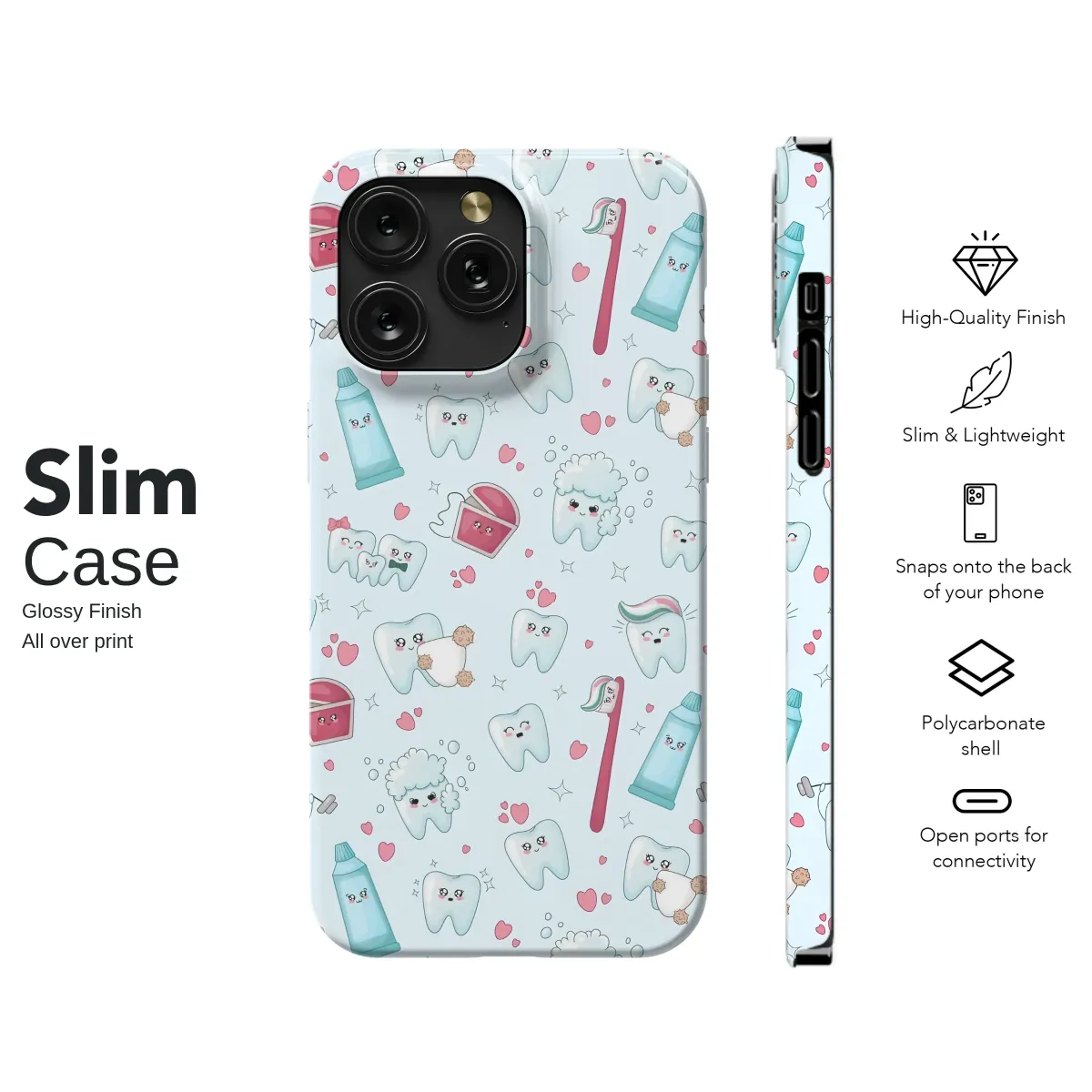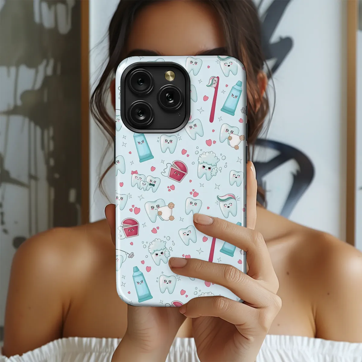 Cute Cartoon Teeth Dental Hygienist Whimsical Pattern Phone Case Cover for iPhone 17 Pro Max 16 15 13 Samsung S25 S24 Pixel 9298