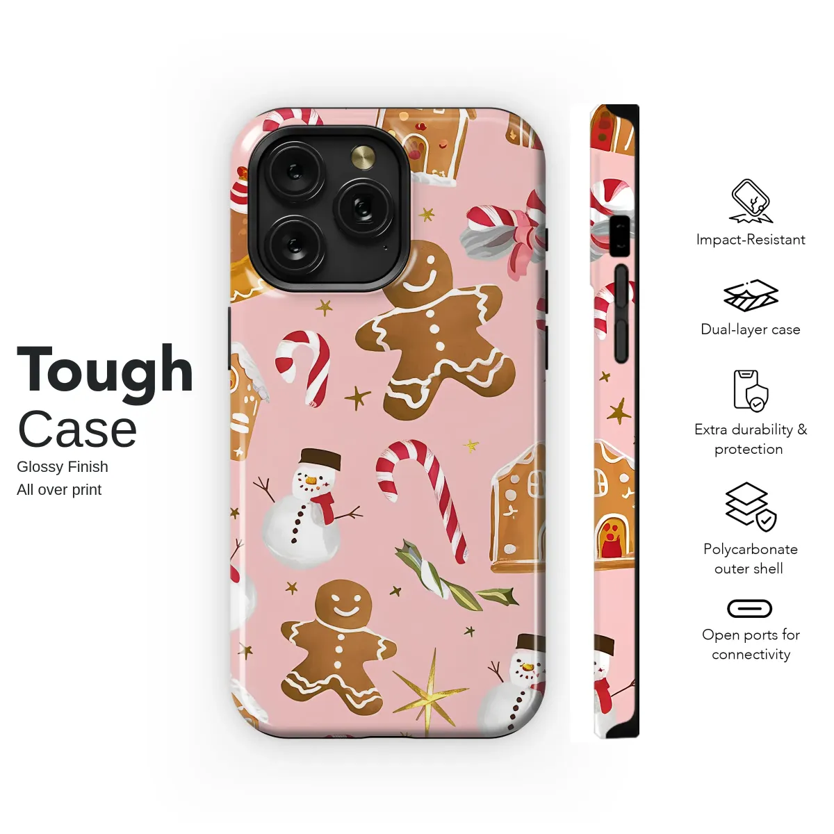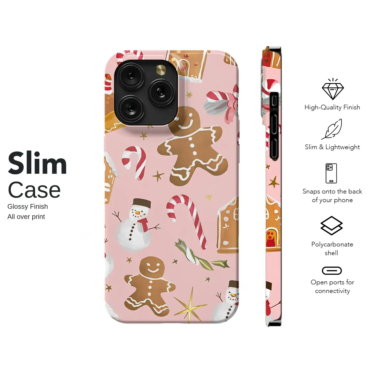 Cute Christmas Gingerbread Pink Holiday Pattern Phone Case Cover for iPhone 17 Pro Max 16 15 Plus 14 13 Mini Samsung S25 S24 Pixel 10 9 8570