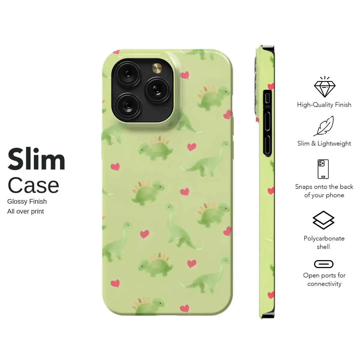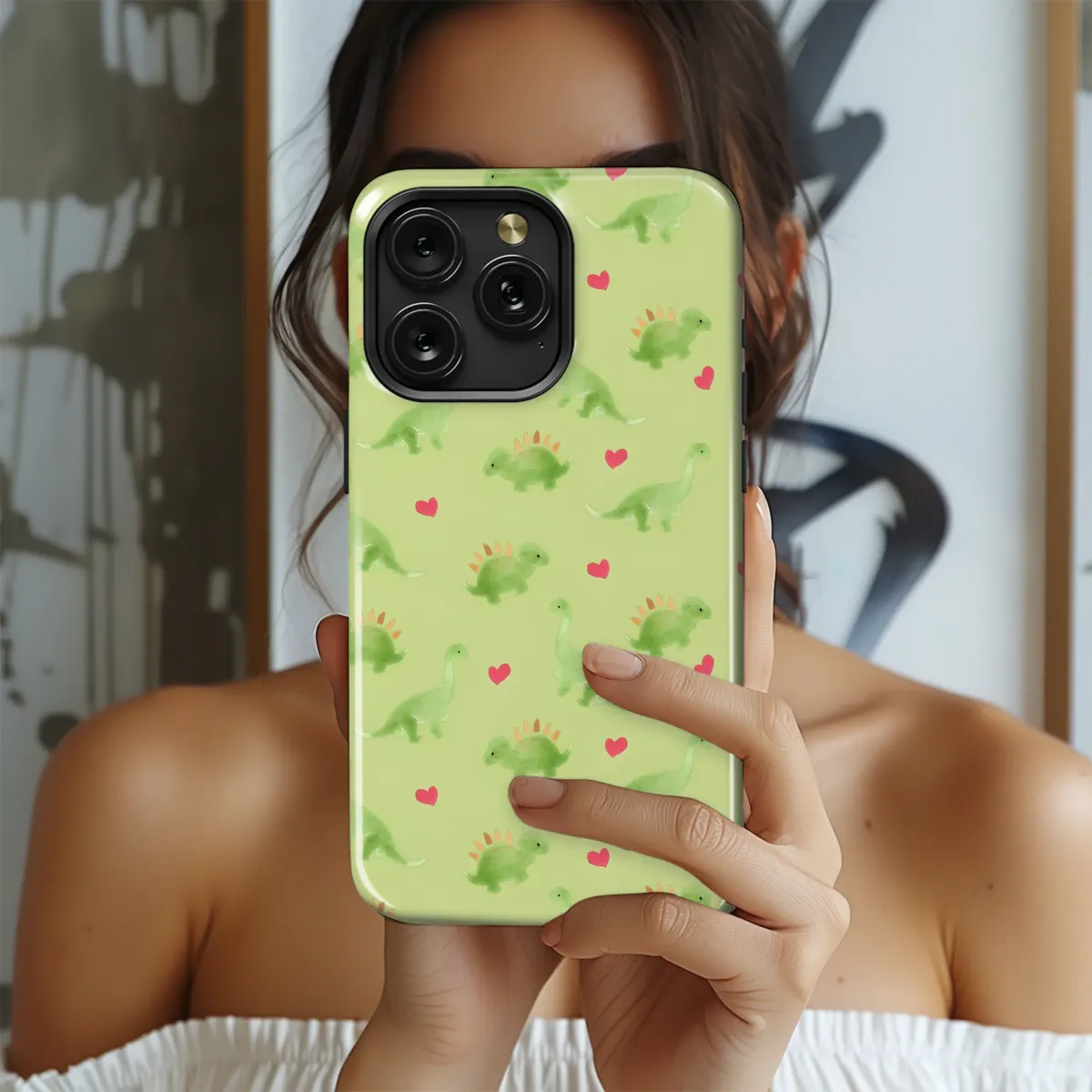 Cute Dinosaur Love Heart Watercolor Pattern Phone Case Cover for iPhone 17 Pro Max 16 15 Plus 14 13 Mini Samsung S26 S25 Pixel 10 9 9507