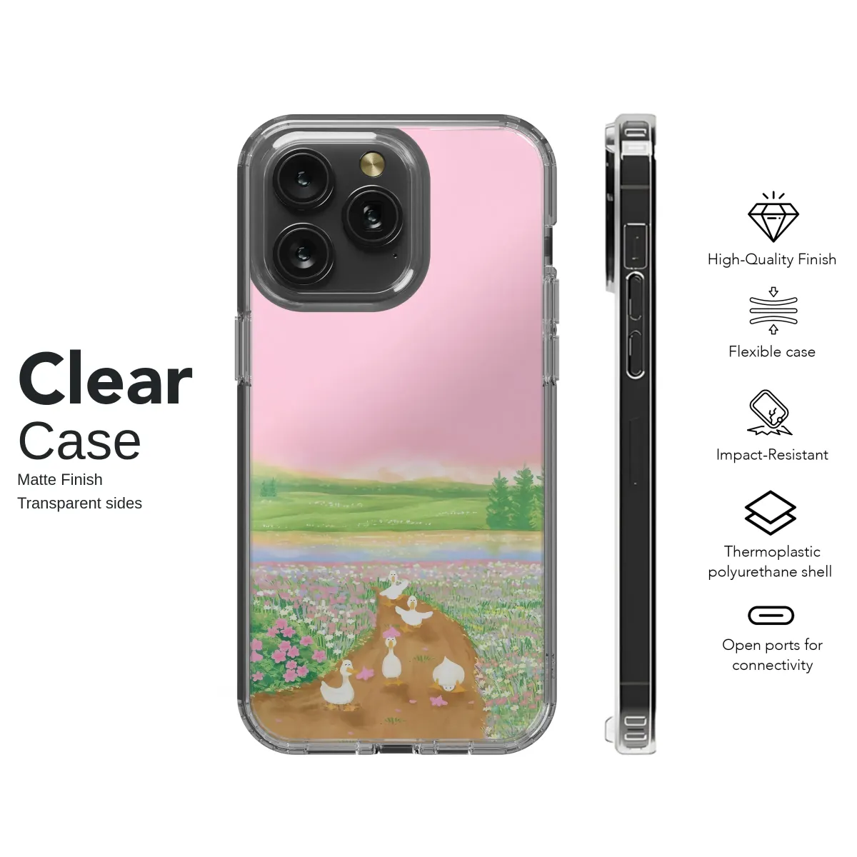 Cute Duck Family in Flower Meadow Whimsical Art Phone Case Cover for iPhone 17 Pro Max 16 15 Plus 14 13 Mini Samsung S26 S25 Pixel 10 9 9603