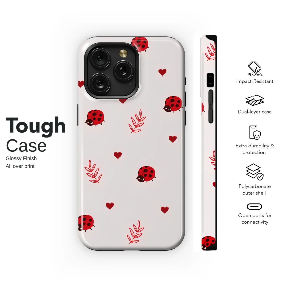 Cute Ladybug Heart Pattern Whimsical Love Bug Doodle Art Phone Case Cover for iPhone 17 Pro Max 16 15 13 Samsung S26 S25 Pixel 9479