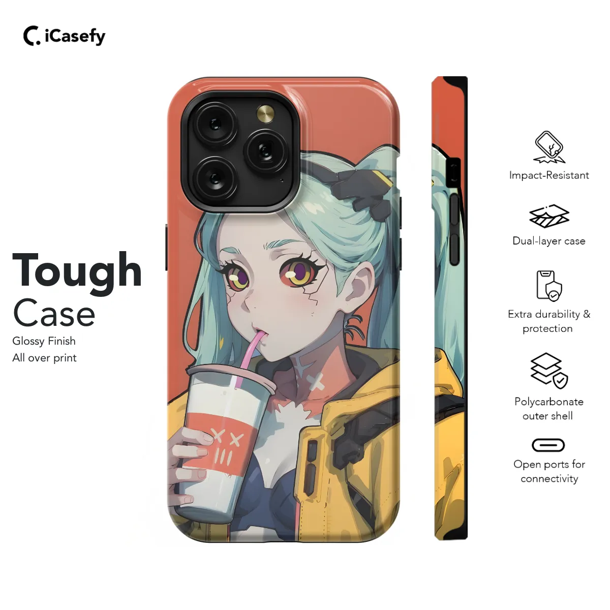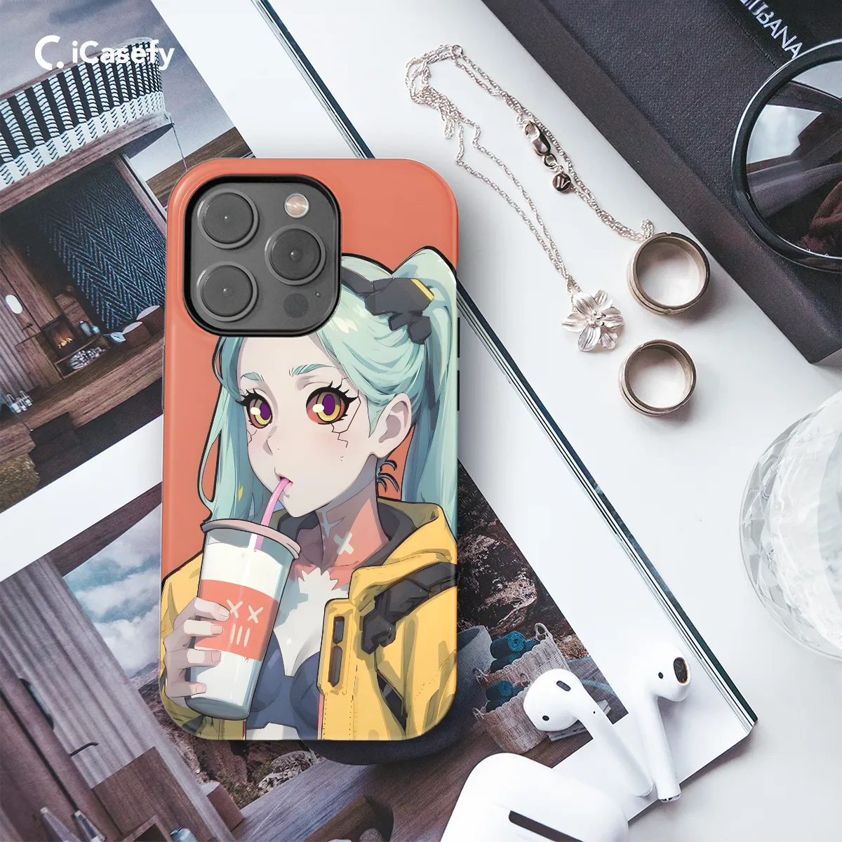 Step into Night City's neon-drenched underworld with this Cyberpunk Edgerunners anime phone case. Featuring Rebecca, the explosive and fiery hacker, it's the ultimate accessory for fans of the hit Netflix series. Protecting your device from the digital realm to the real world, this case is made from durable materials to withstand any decker's attack. Its sleek design and striking artwork will turn heads and make you stand out from the cybernetic crowd. Whether you're a netrunner or a solo, this phone case is the perfect way to show your allegiance to the Edgerunners. It's compatible with various iPhone, Samsung, and Pixel models, so you can keep your device safe and stylish no matter where your hacking adventures take you.