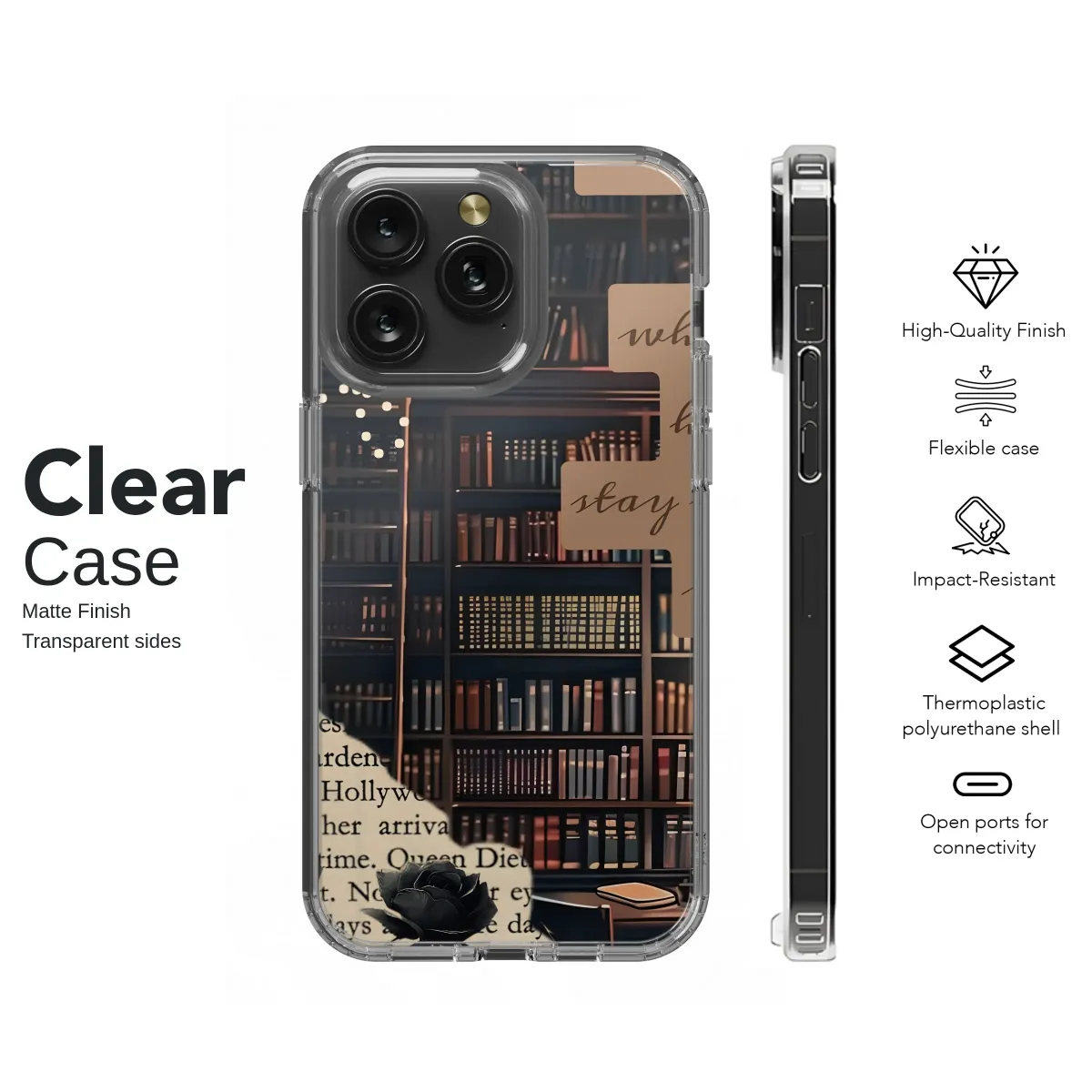 Dark Academia Library Collage with Reading Quote Phone Case Cover for iPhone 17 Pro Max 16 15 13 Samsung S25 S24 Pixel 8973