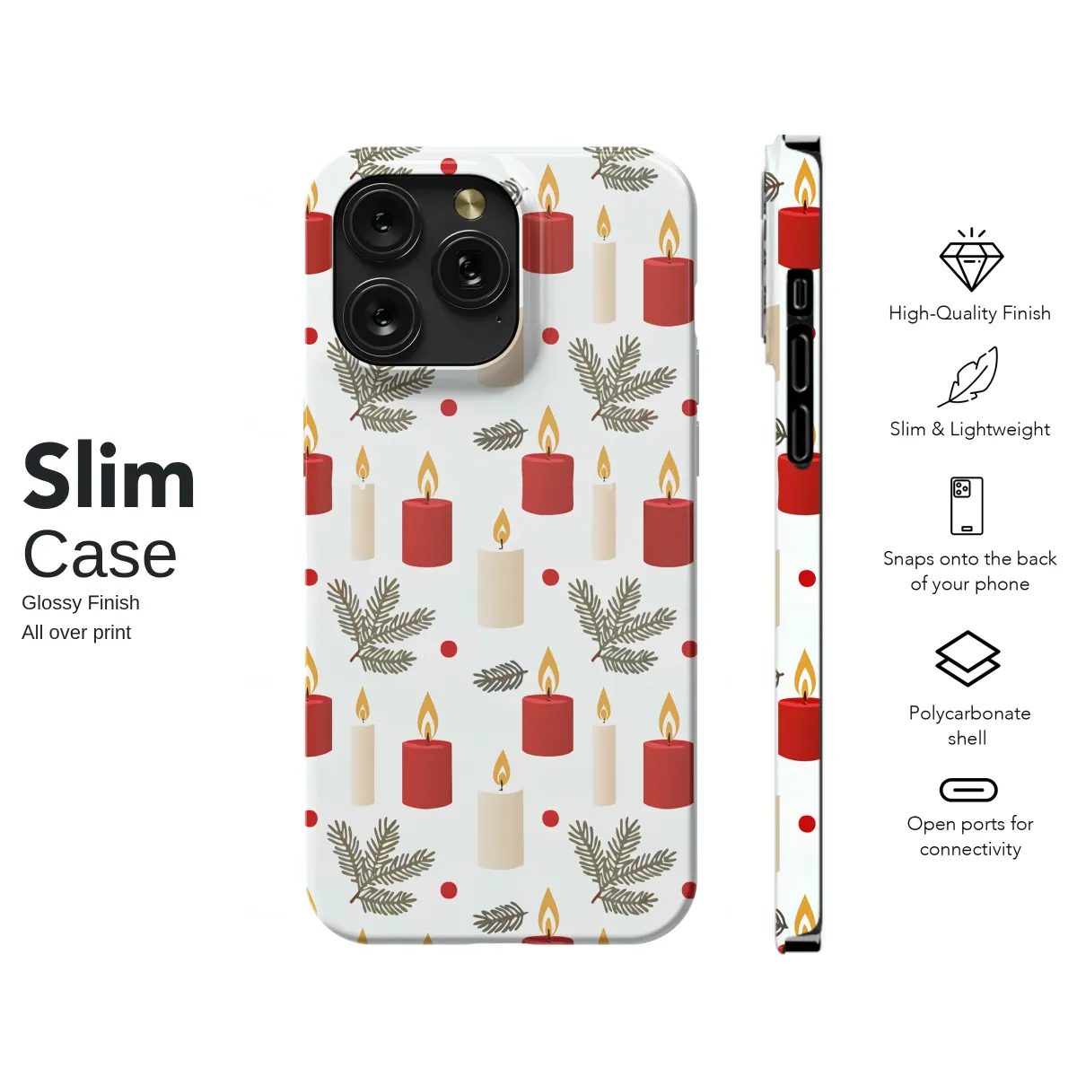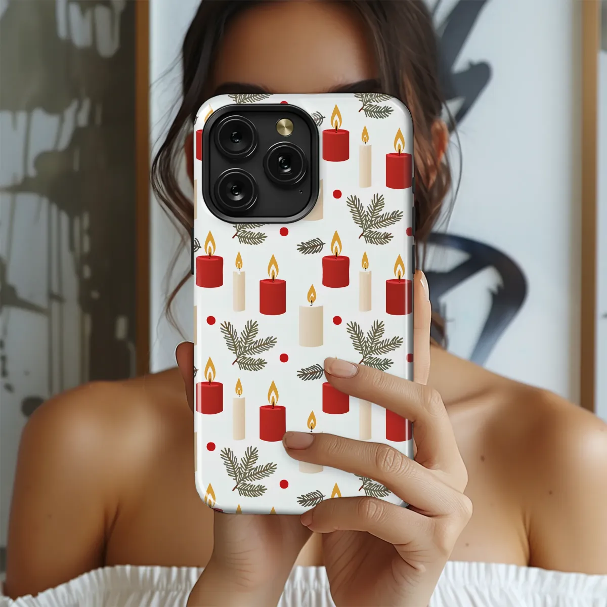 Festive Christmas Candle and Pine Pattern Phone Case Cover for iPhone 17 Pro Max 16 15 Plus 14 13 Mini Samsung S25 S24 Pixel 10 9 9124