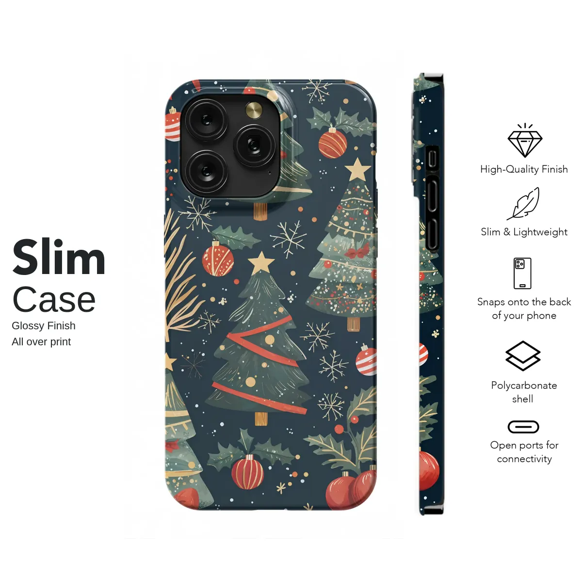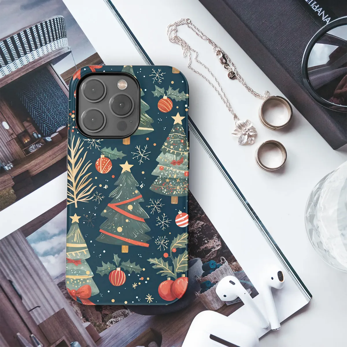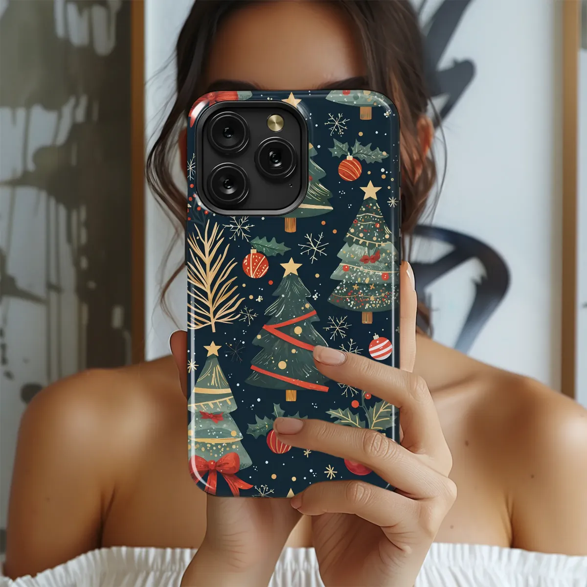 Festive Christmas Tree Illustrated Holiday Pattern Phone Case Cover for iPhone 17 Pro Max 16 15 13 Samsung S25 S24 Pixel 9154