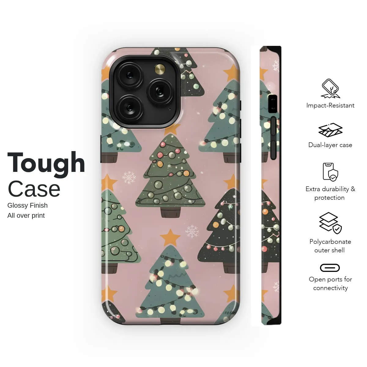 Festive Christmas Tree Winter Pattern Phone Case Cover for iPhone 17 Pro Max 16 15 Plus 14 13 Mini SE Samsung S25 S24 Google Pixel 10 9 8612