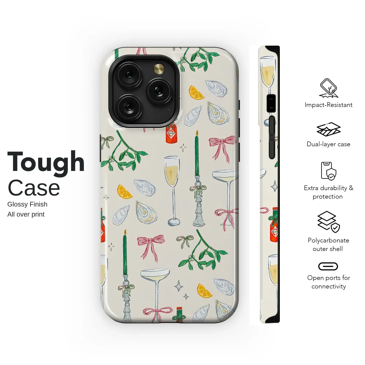 Festive Oysters Champagne Holiday Pattern Phone Case Cover for iPhone 17 Pro Max 16 15 Plus 14 13 Mini Samsung S25 S24 Pixel 10 9 8950