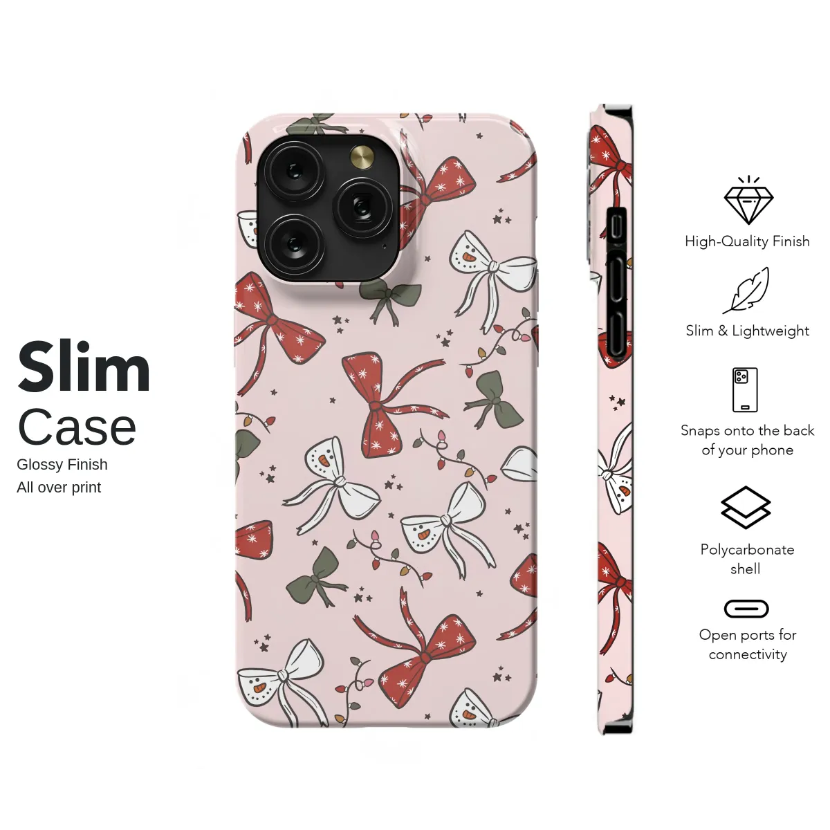Festive Snowman Bows Pink Christmas Pattern Phone Case Cover for iPhone 17 Pro Max 16 15 Plus 14 13 Mini Samsung S25 S24 Pixel 10 9 9132