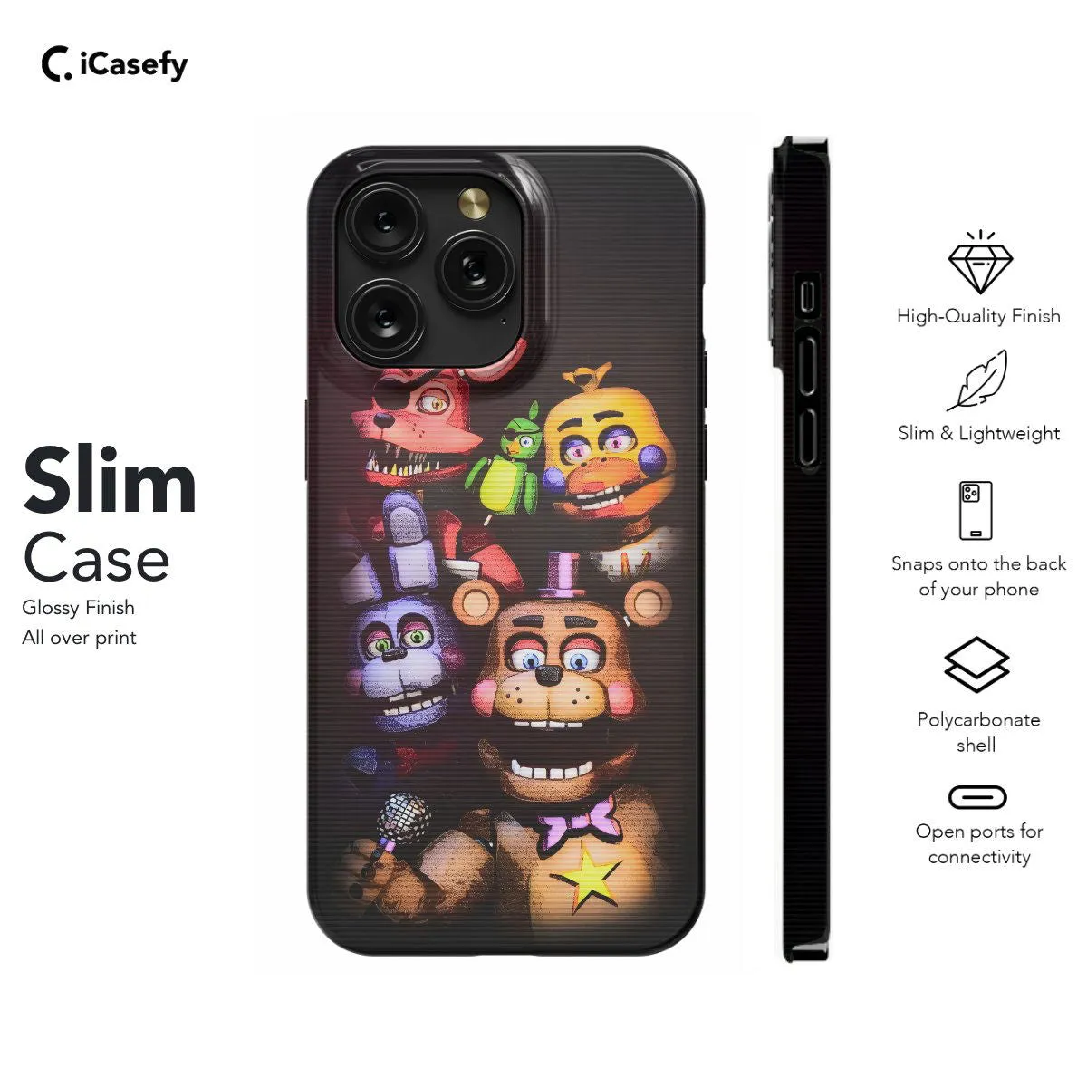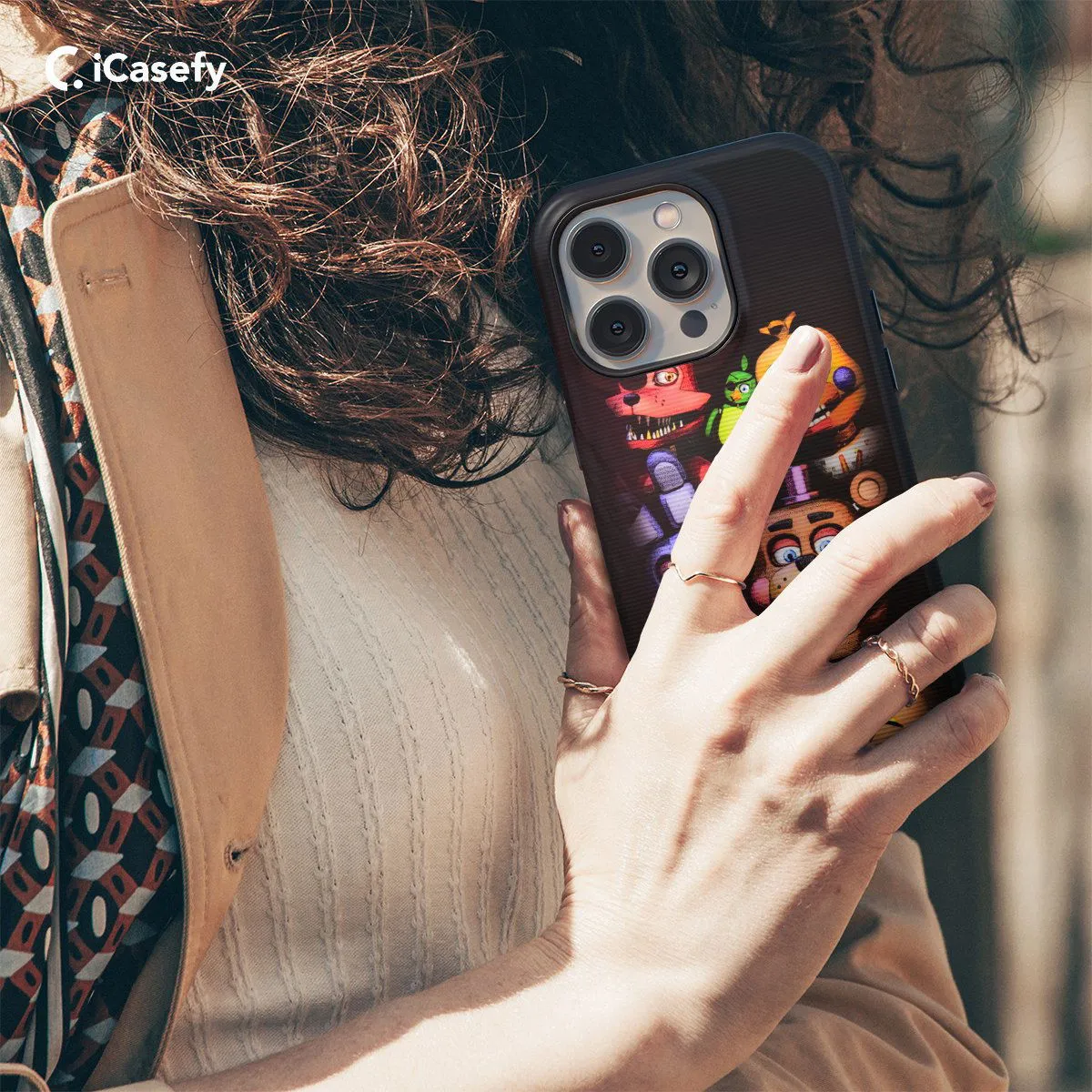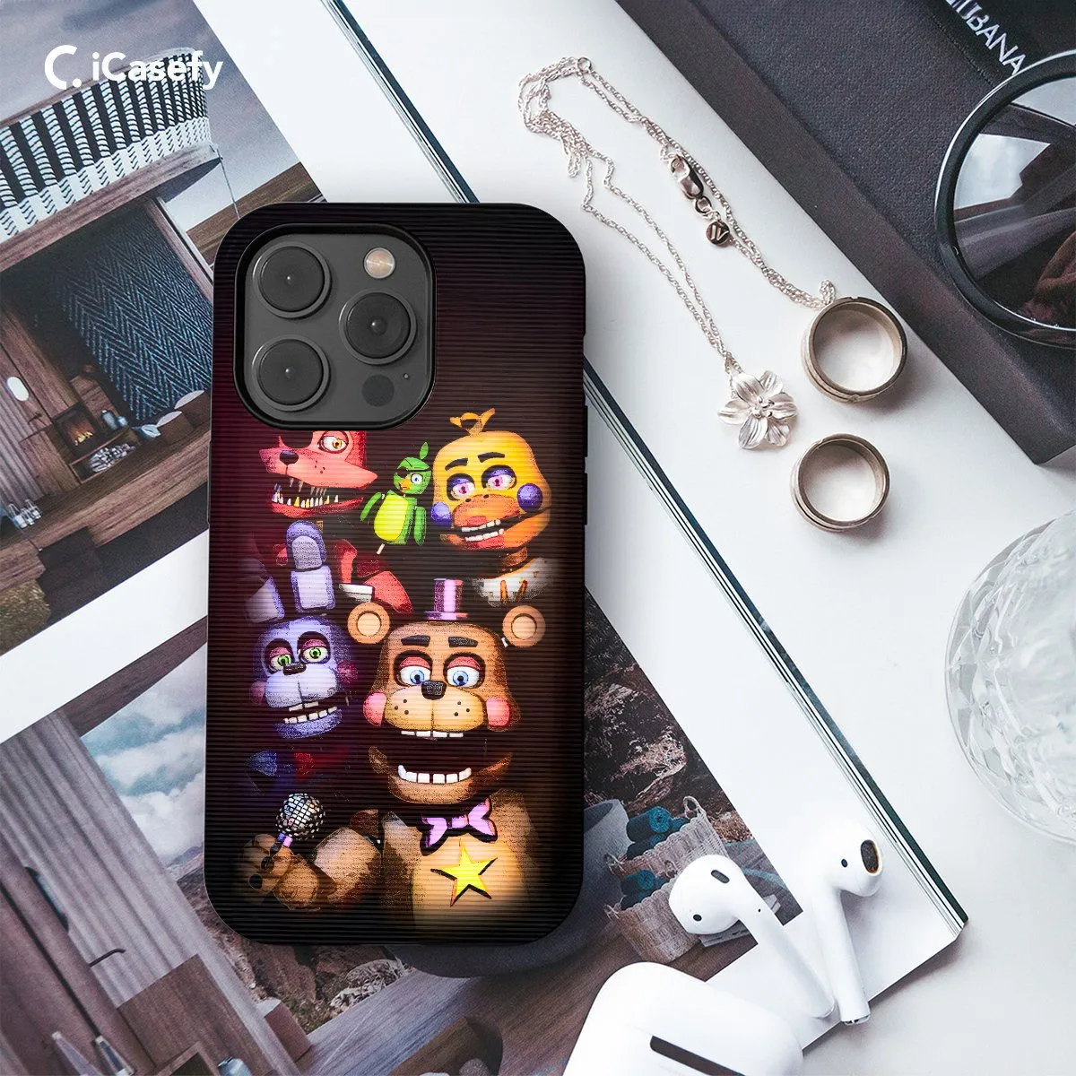 Immerse yourself in the suspenseful world of Five Nights at Freddy's with this chilling phone case featuring iconic characters and elements from the game. From Freddy Fazbear to Bonnie the Bunny, this case captures the eerie atmosphere and thrill of the FNAF universe. Carry a touch of animatronic horror with you wherever you go, letting your device become a tribute to the spine-tingling excitement of Five Nights at Freddy's with this haunting accessory.