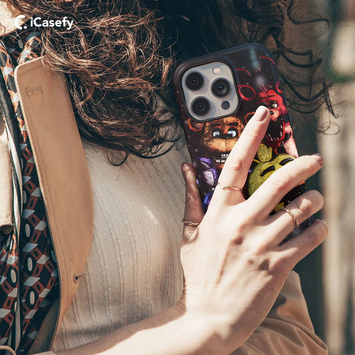 Introducing our FNAF (Five Nights at Freddy's) phone case, inspired by the popular horror game franchise. Protect your device with style while showcasing your love for the spooky world of Freddy Fazbear and his animatronic friends. Perfect for fans of horror gaming.