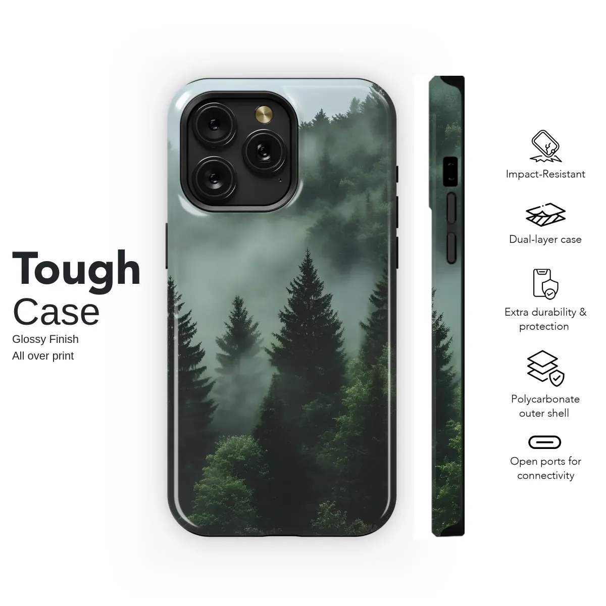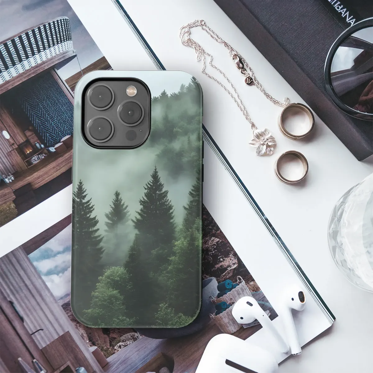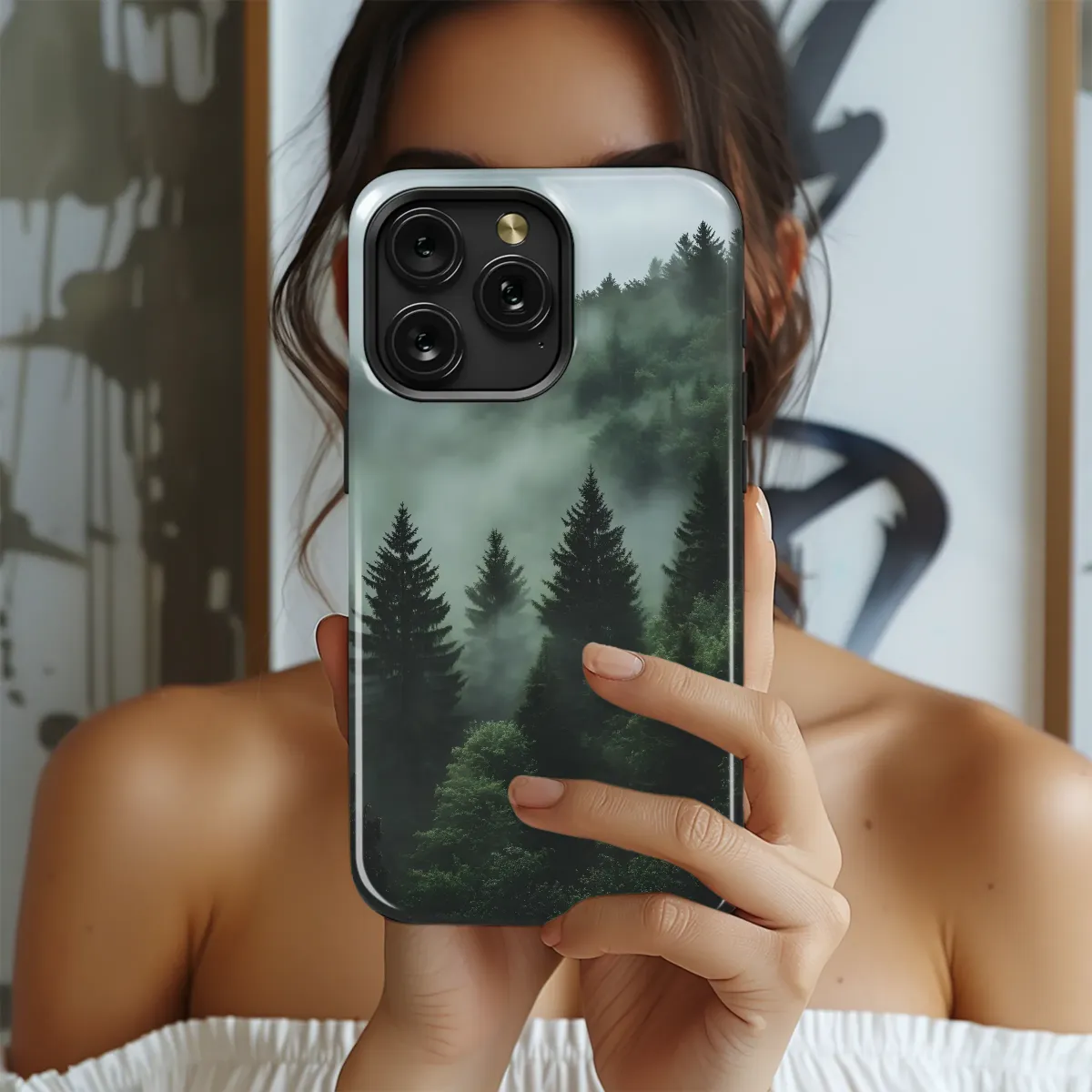 Foggy Pine Forest Moody Woodland Nature Graphic Phone Case Cover for iPhone 17 Pro Max 16 15 Plus 14 13 Mini Samsung S25 S24 Pixel 10 9 9018 - Image 1