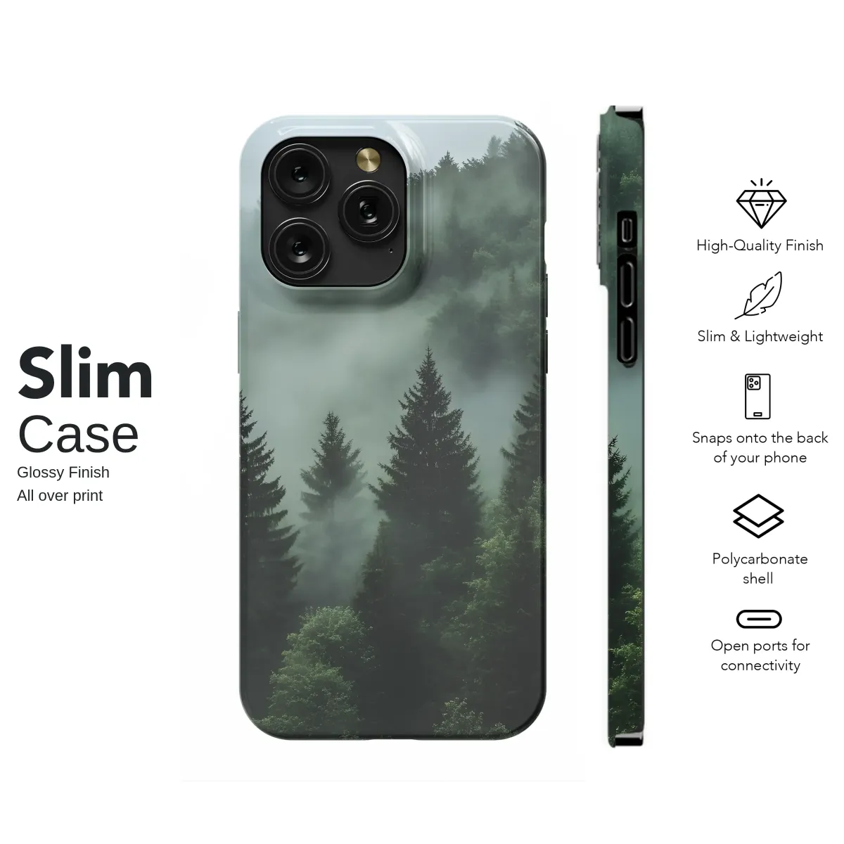 Foggy Pine Forest Moody Woodland Nature Graphic Phone Case Cover for iPhone 17 Pro Max 16 15 Plus 14 13 Mini Samsung S25 S24 Pixel 10 9 9018