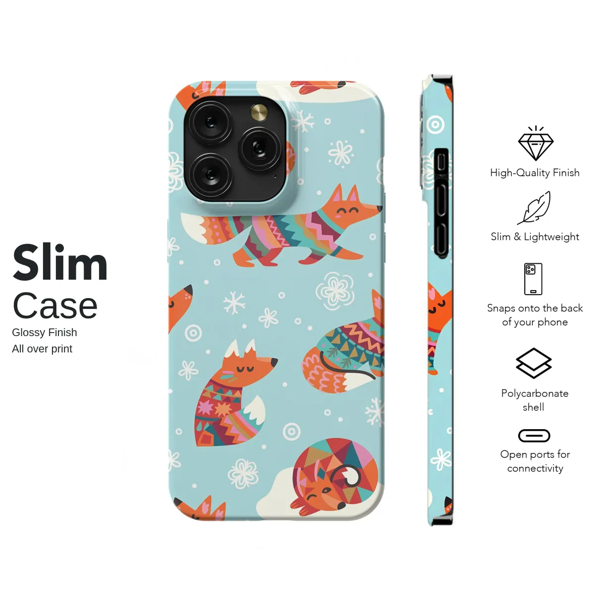 Folk Art Fox Phone Case, Whimsical Winter Woodland Animal Cover for iPhone Phone Case iPhone Samsung Cover Pixel 8148
