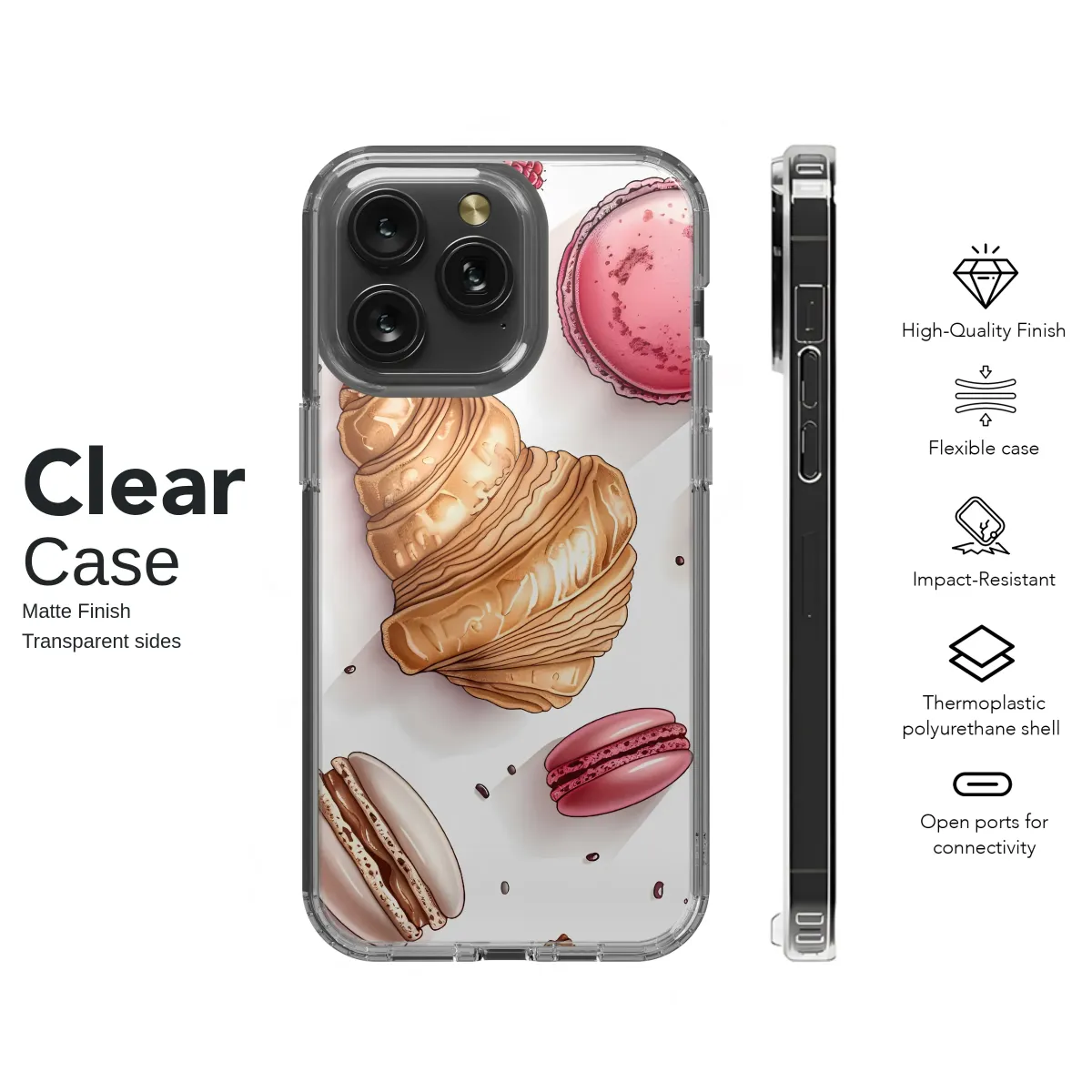 French Pastry Macaron Croissant Illustration Phone Case Cover for iPhone 17 Pro Max 16 15 Plus 14 13 Mini Samsung S25 S24 Pixel 10 9 8686
