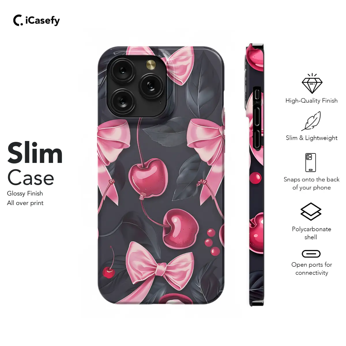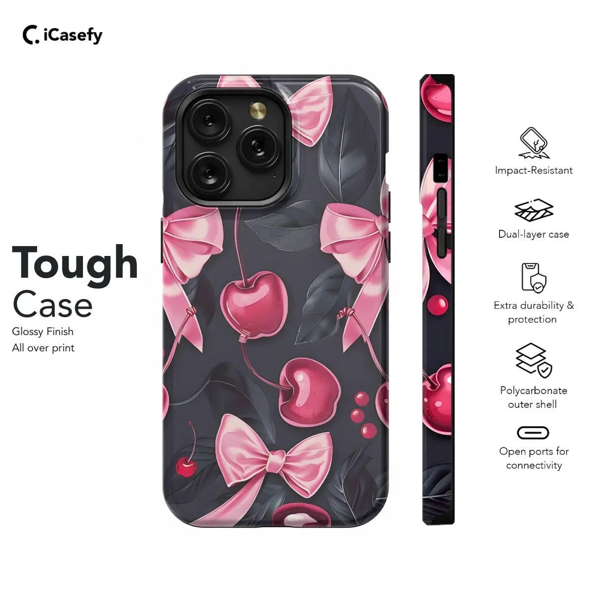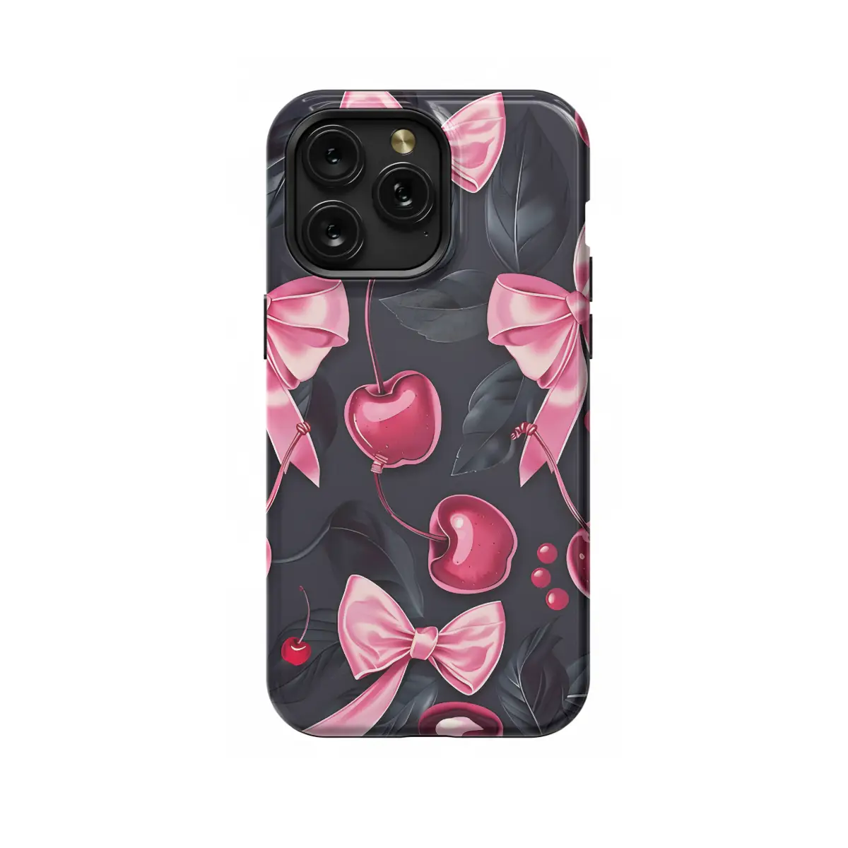 Embrace your inner coquette with this adorable Girly Black Coquette Cherry Pink Bow Ribbons Phone Case. Its sleek black base is adorned with playful pink cherry embellishments and a charming bow ribbon, creating a whimsical and feminine aesthetic. This case not only protects your precious device but also adds a touch of sweetness and charm to your everyday style. Let your phone shine in the spotlight with our captivating Girly Black Coquette Phone Case. Compatible with a wide range of iPhone, Samsung, and Pixel models, it ensures a perfect fit and seamless functionality. Order now and transform your phone into a fashion statement that will have everyone's eyes on you!