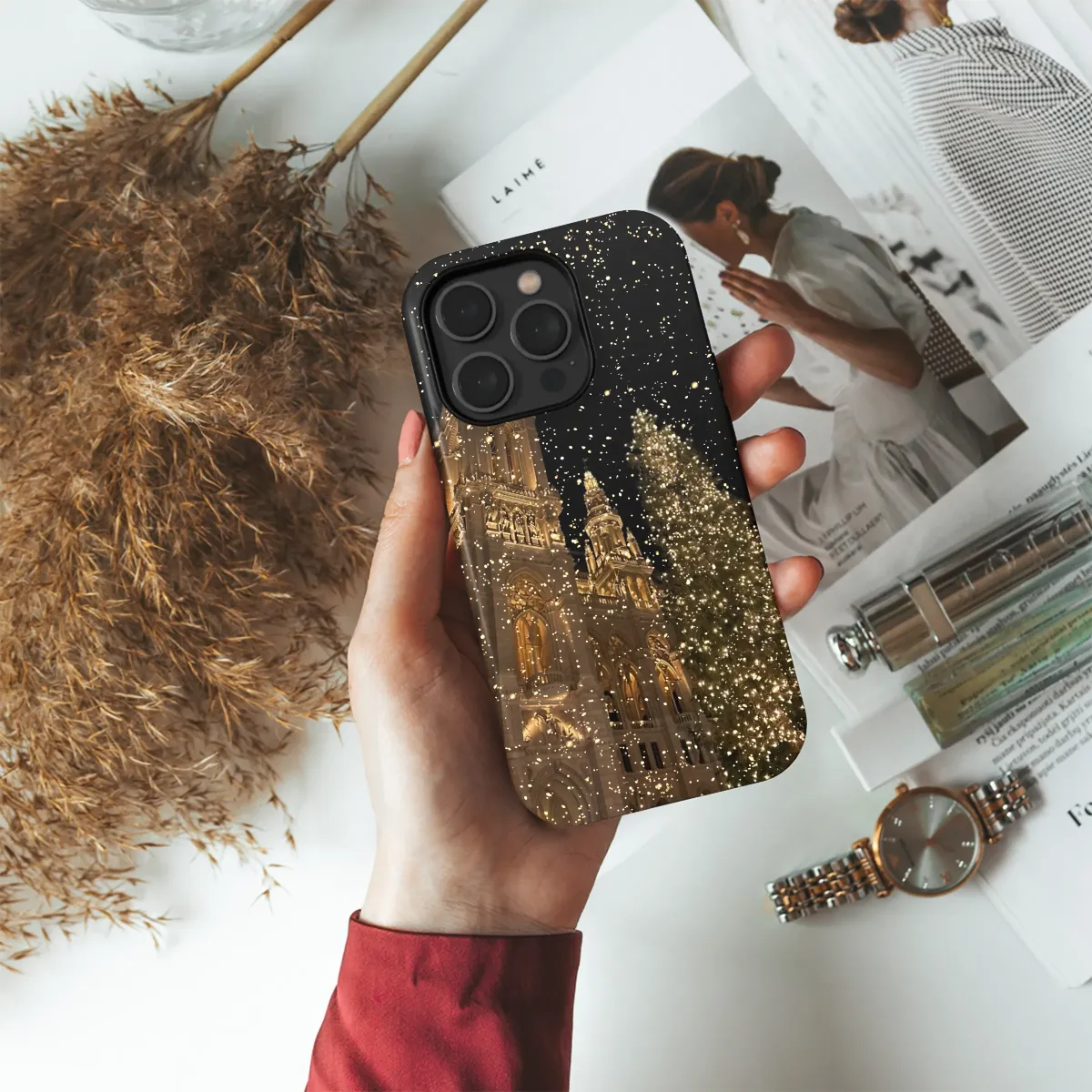 Golden Snowfall Vienna Christmas Design Phone Case Cover for iPhone 17 Pro Max 16 15 Plus 14 13 Mini Samsung S25 S24 Google Pixel 10 9 8846