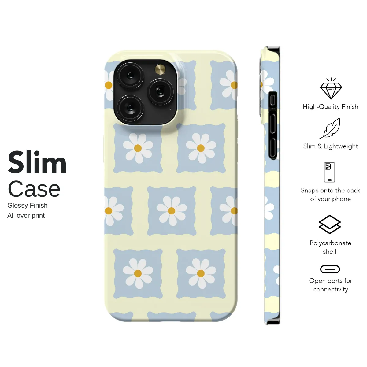 Groovy Daisy Floral Pattern Pastel Blue Aesthetic Phone Case Cover for iPhone 17 Pro Max 16 15 13 Samsung S25 S24 Pixel 8176