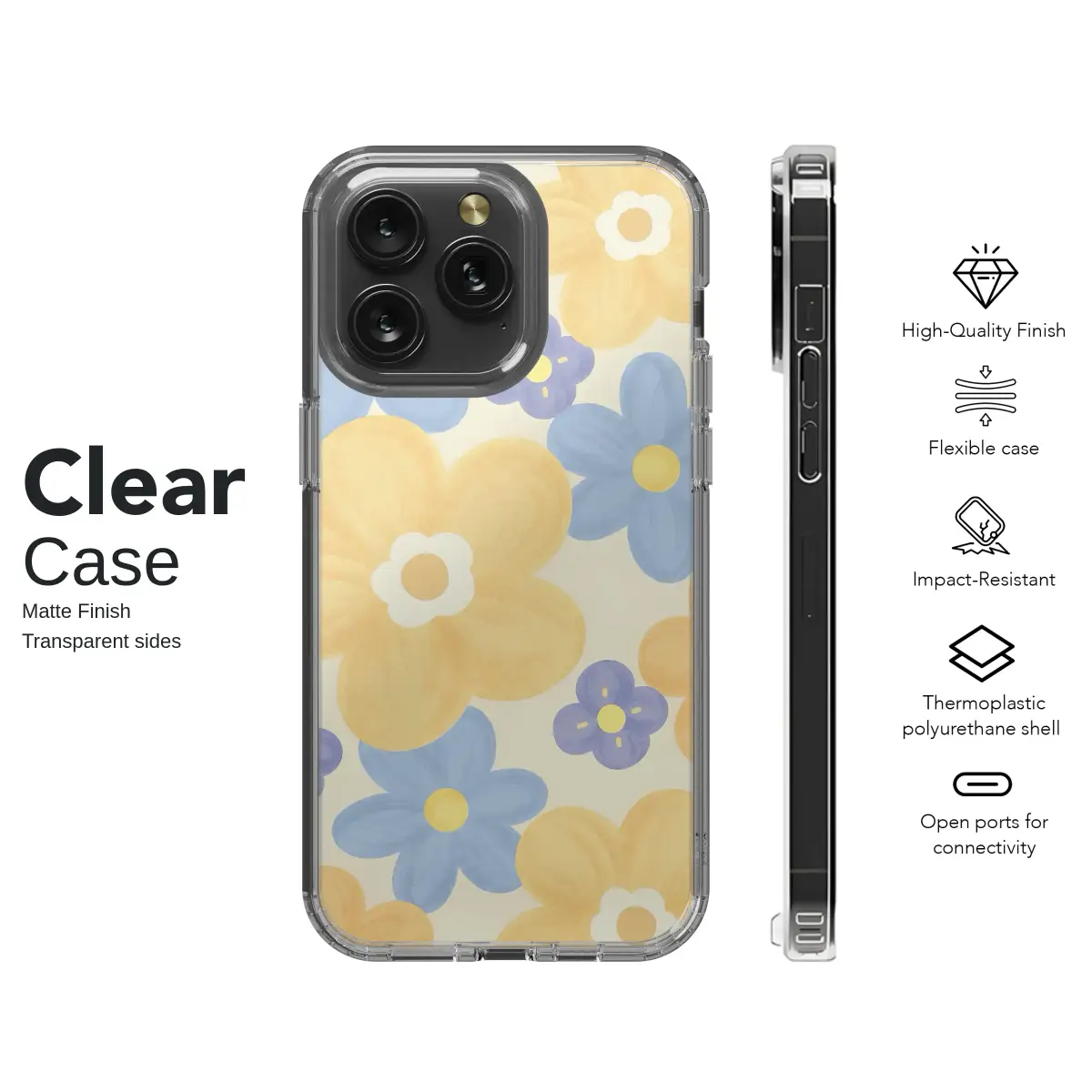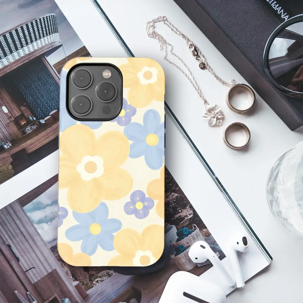 Groovy Retro Floral Yellow and Blue Pattern Phone Case Cover for iPhone 17 Pro Max 16 15 Plus 14 13 Mini Samsung S26 S25 Pixel 10 9 9951