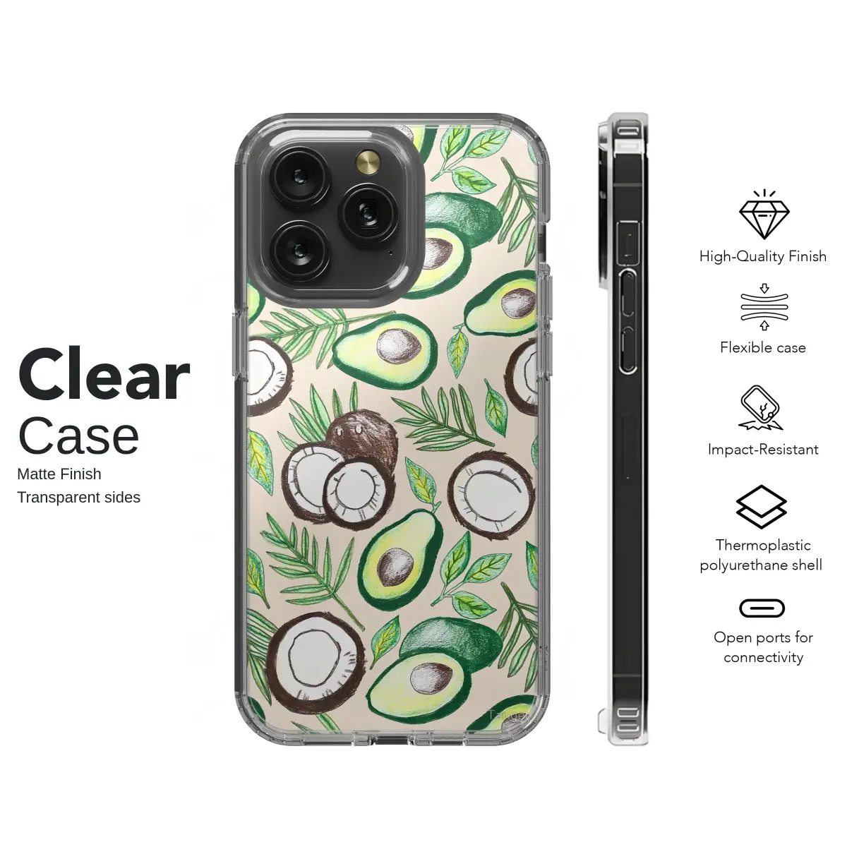 Hand Drawn Tropical Fruit Avocado Coconut Illustration Phone Case Cover for iPhone 17 Pro Max 16 15 13 Samsung S26 S25 Pixel 9824