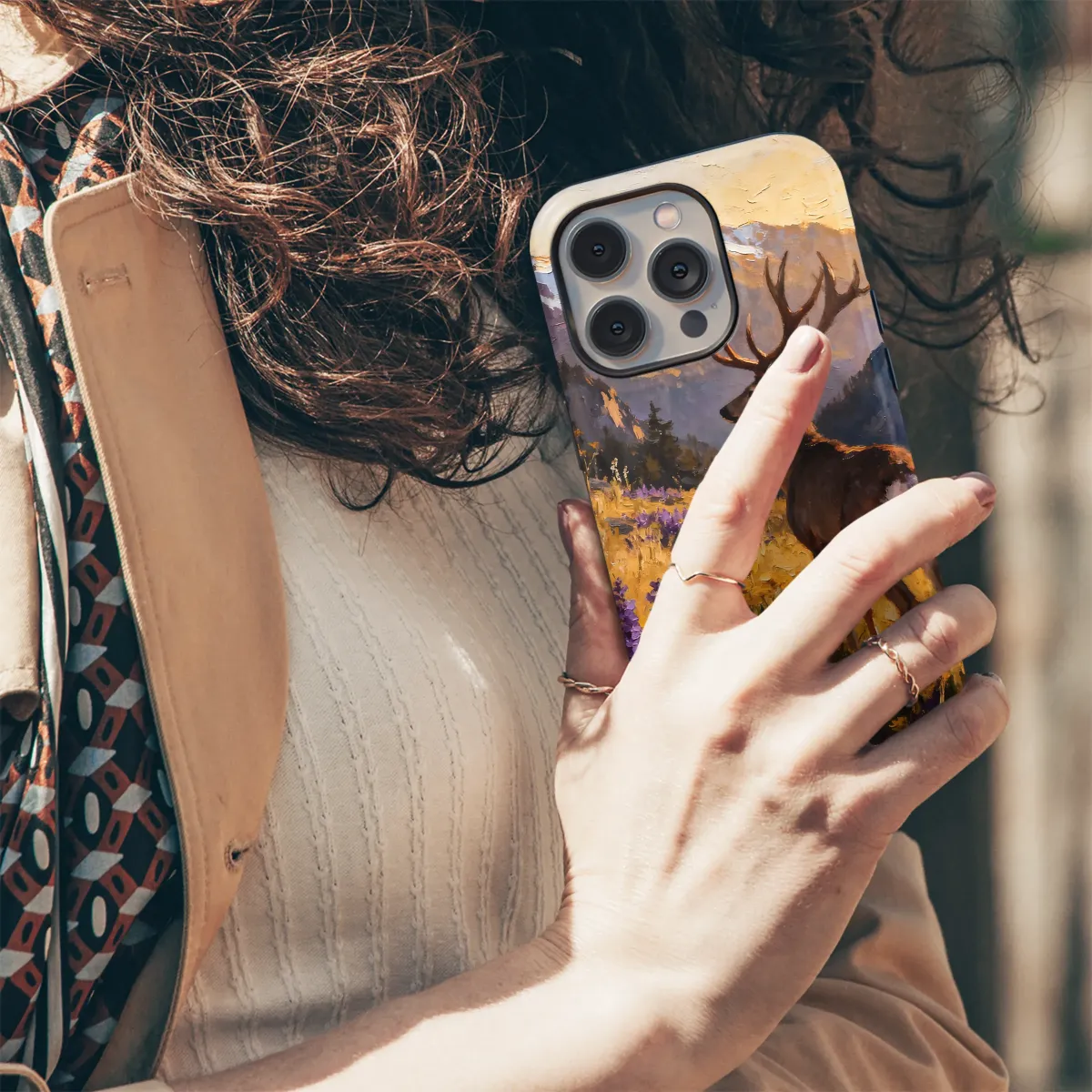 Impressionist Mountain Deer Art Rustic Wildlife Painting Phone Case Cover for iPhone 17 Pro Max 16 15 13 Samsung S26 S25 Pixel 9527
