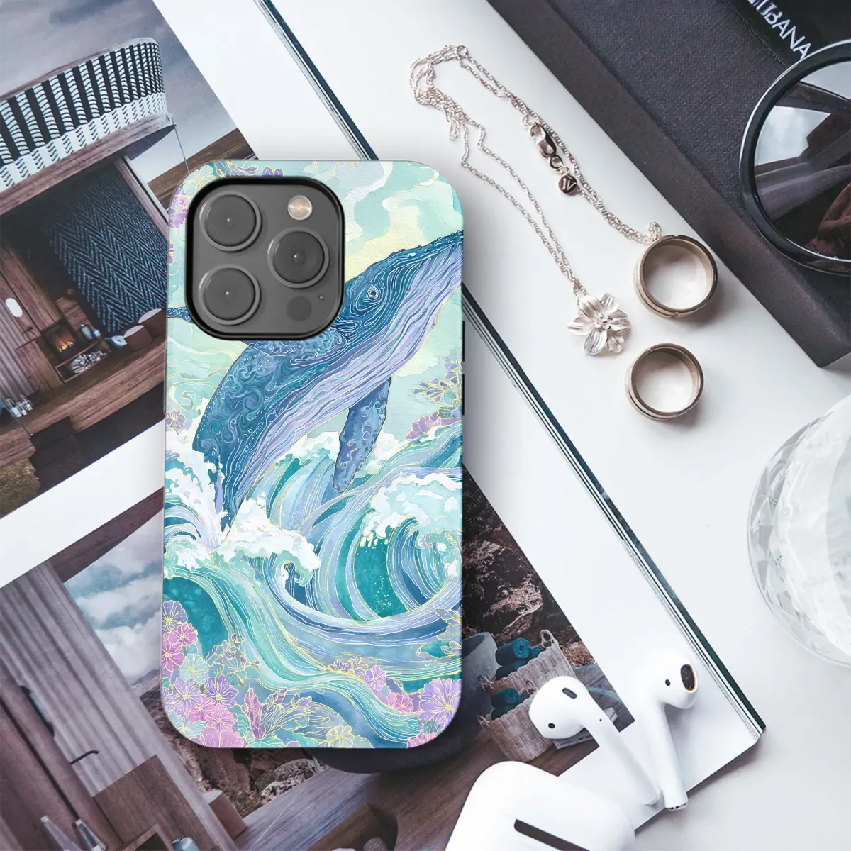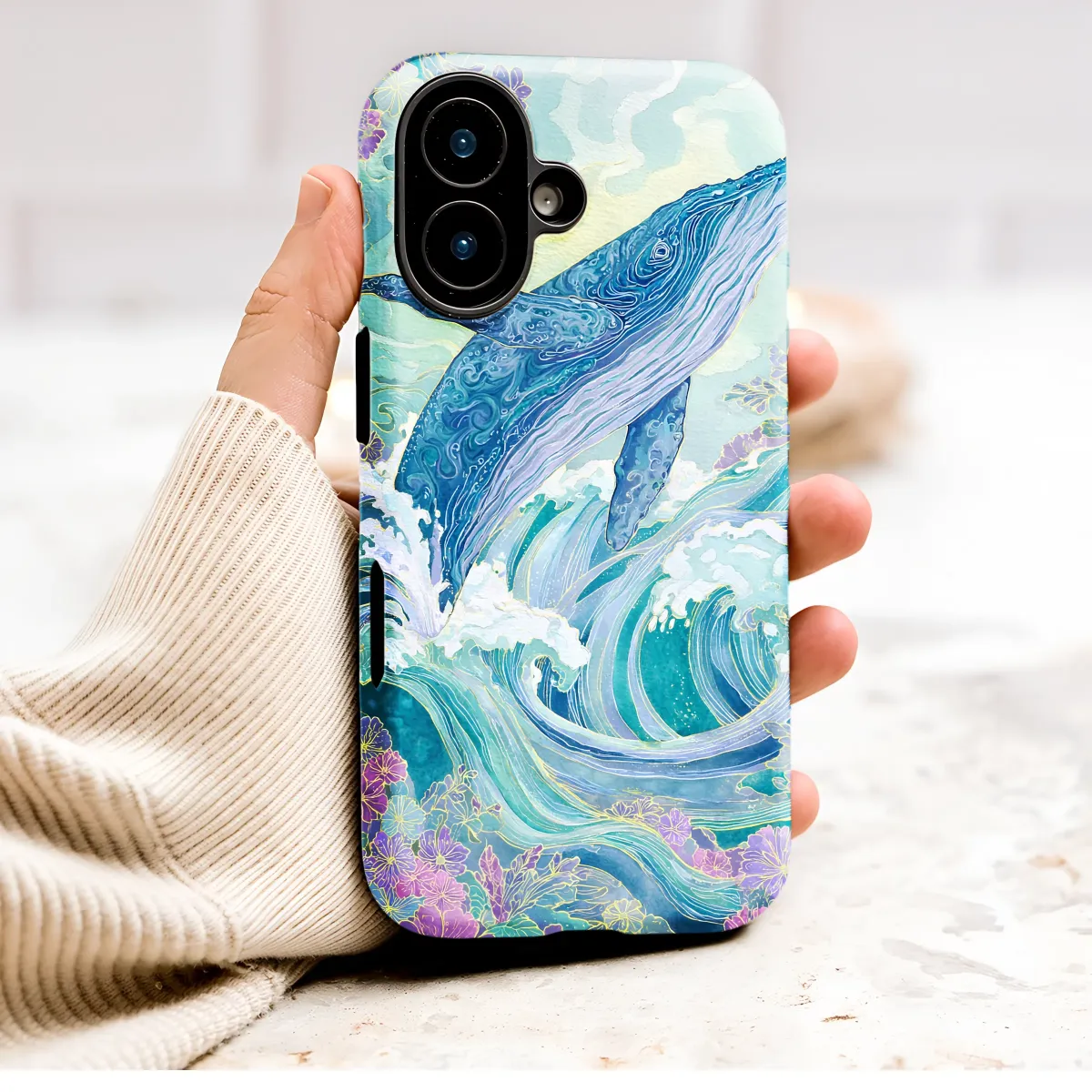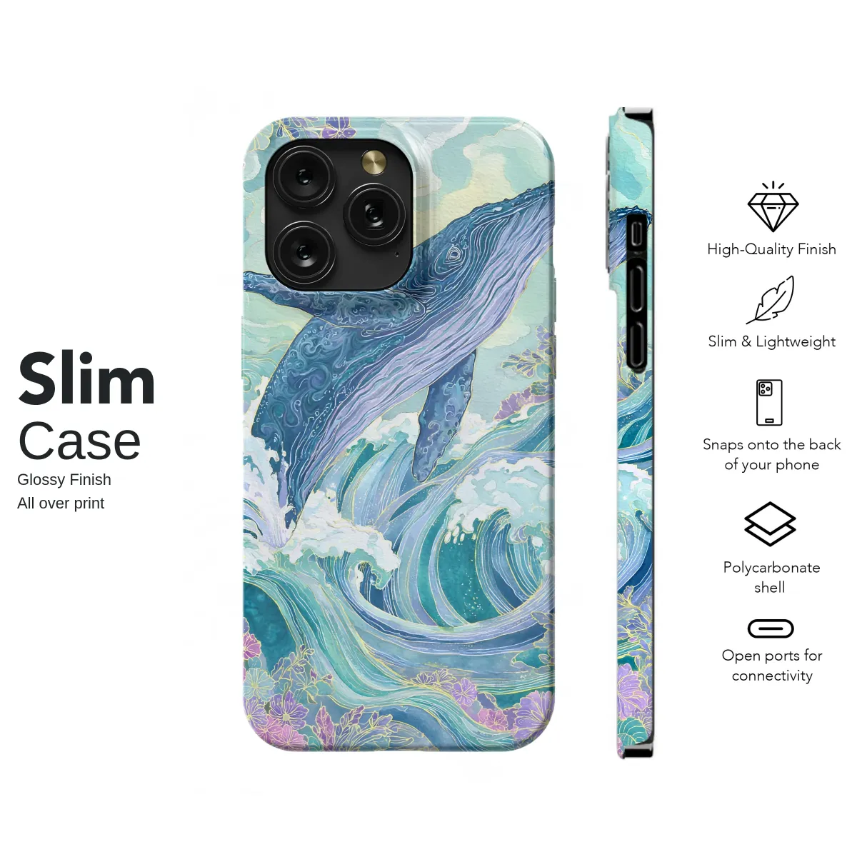 Japanese Floral Whale Art with Gilded Ocean Waves Phone Case Cover for iPhone 17 Pro Max 16 15 13 Samsung S26 S25 Pixel 9538