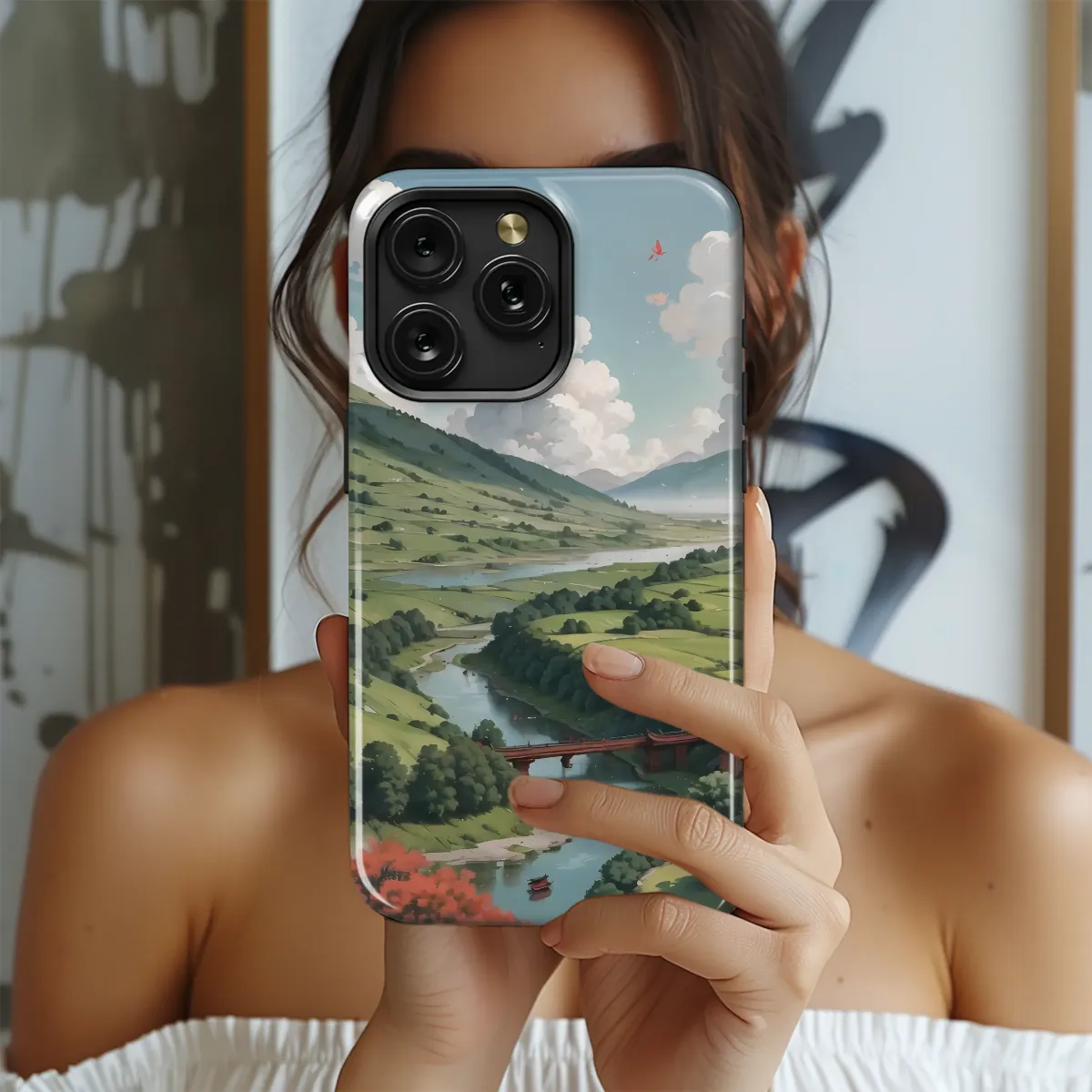Japanese Valley Scenery Anime Art Design Phone Case Cover for iPhone 17 Pro Max 16 15 Plus 14 13 Mini Samsung S26 S25 Google Pixel 10 9 9644