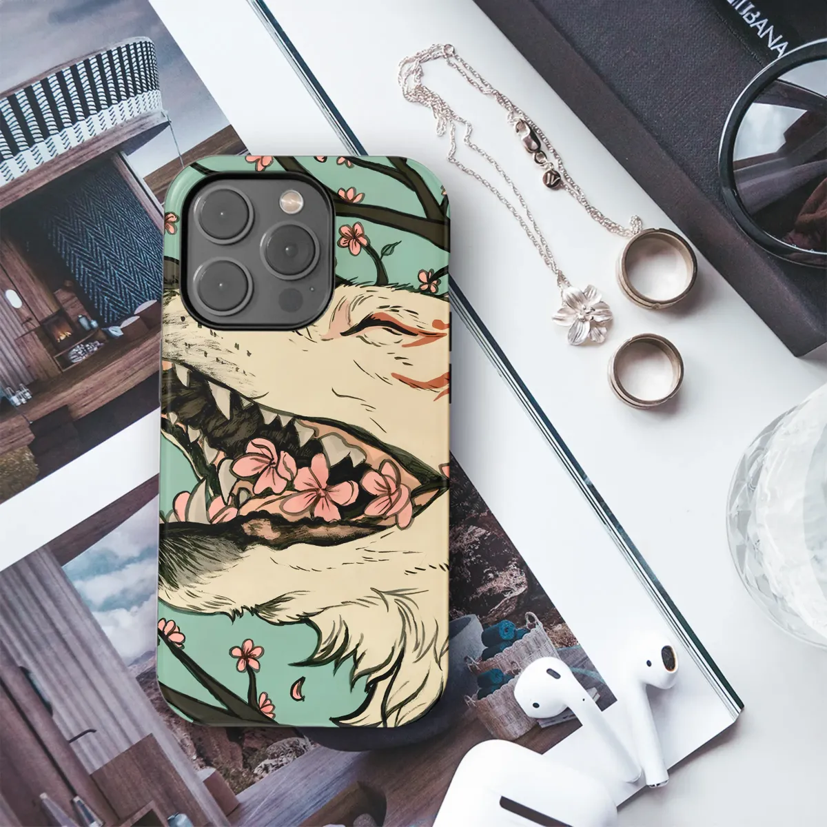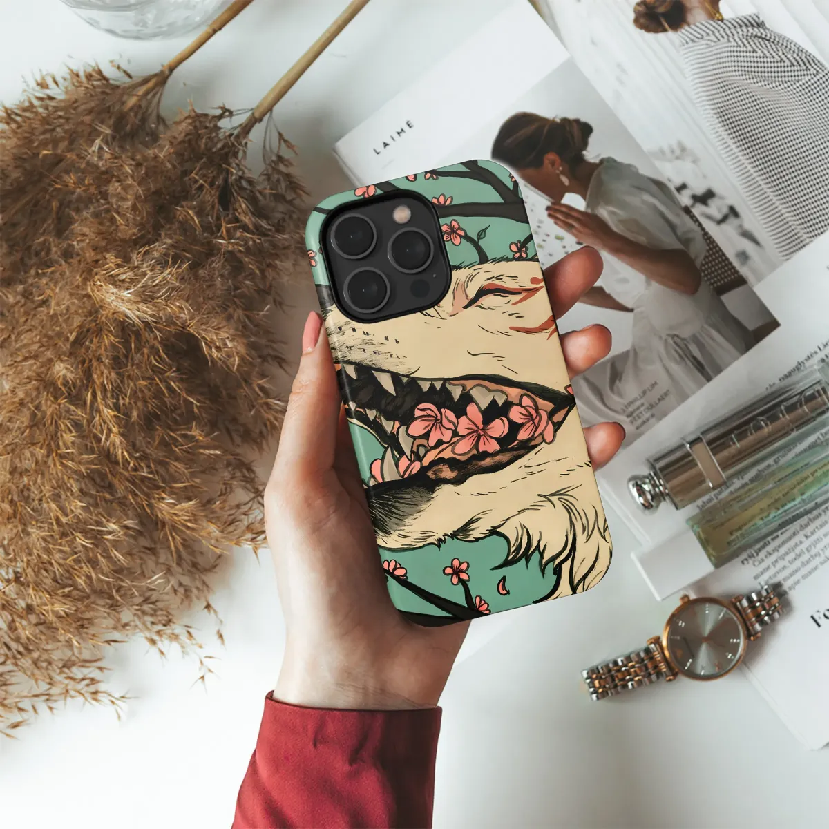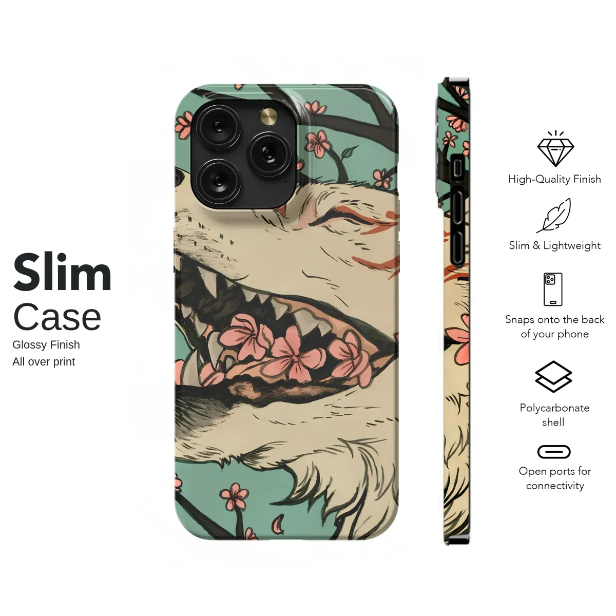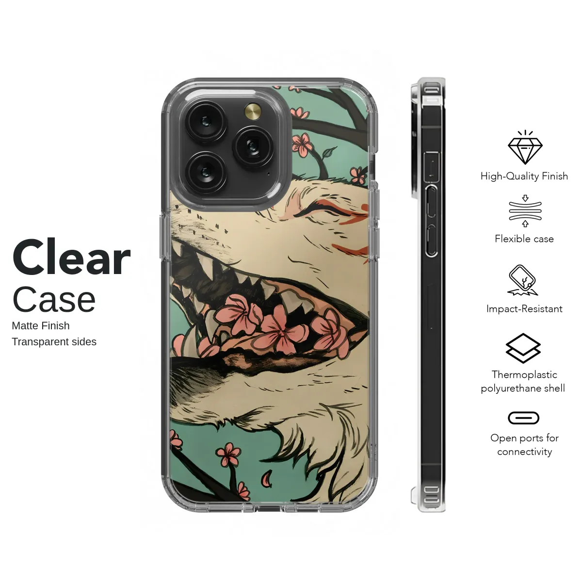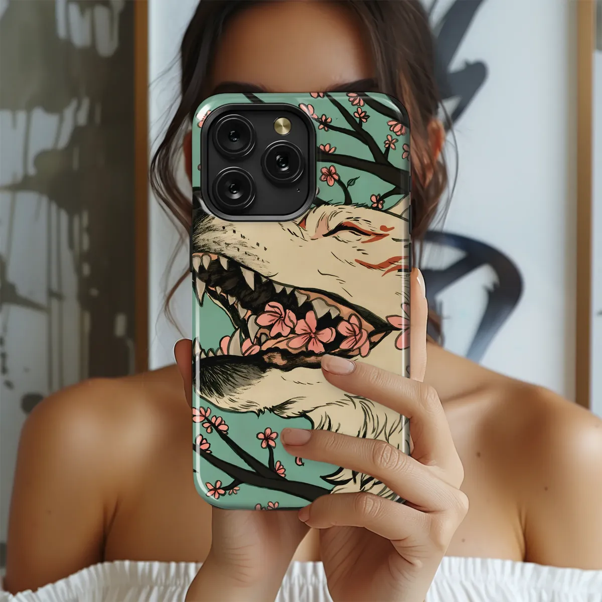 Japanese Wolf Cherry Blossom Art Illustration Phone Case Cover for iPhone 17 Pro Max 16 15 Plus 14 13 Mini Samsung S26 S25 Pixel 10 9 9548