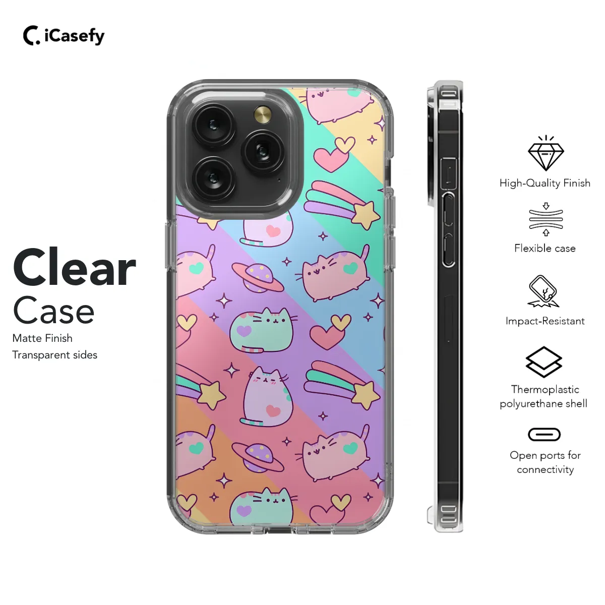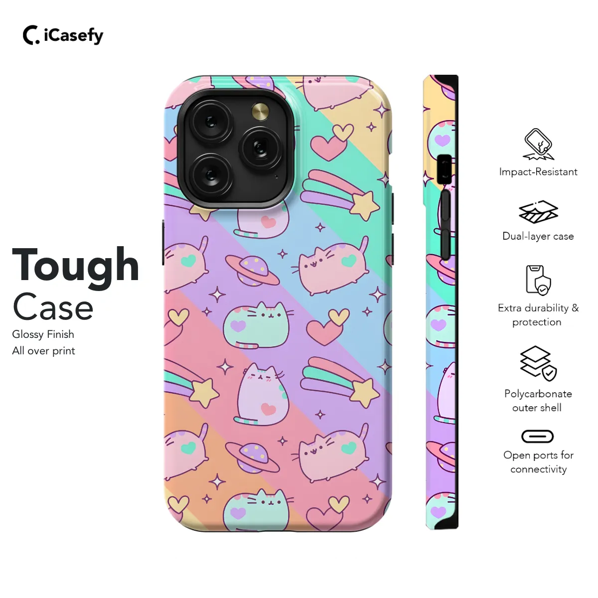Step into a world of cuteness with our Kawaii Cats Rainbow Phone Case! Protect your precious device in adorable style as playful cats dance across a vibrant rainbow backdrop. Available for a wide range of iPhone, Samsung, and Pixel models, this phone case ensures both style and durability. Its slim profile hugs your phone snugly, while the durable material safeguards it from scratches, bumps, and everyday wear and tear. Add a touch of whimsy and protection to your phone with our Kawaii Cats Rainbow Phone Case, the purr-fect accessory for any cat lover!