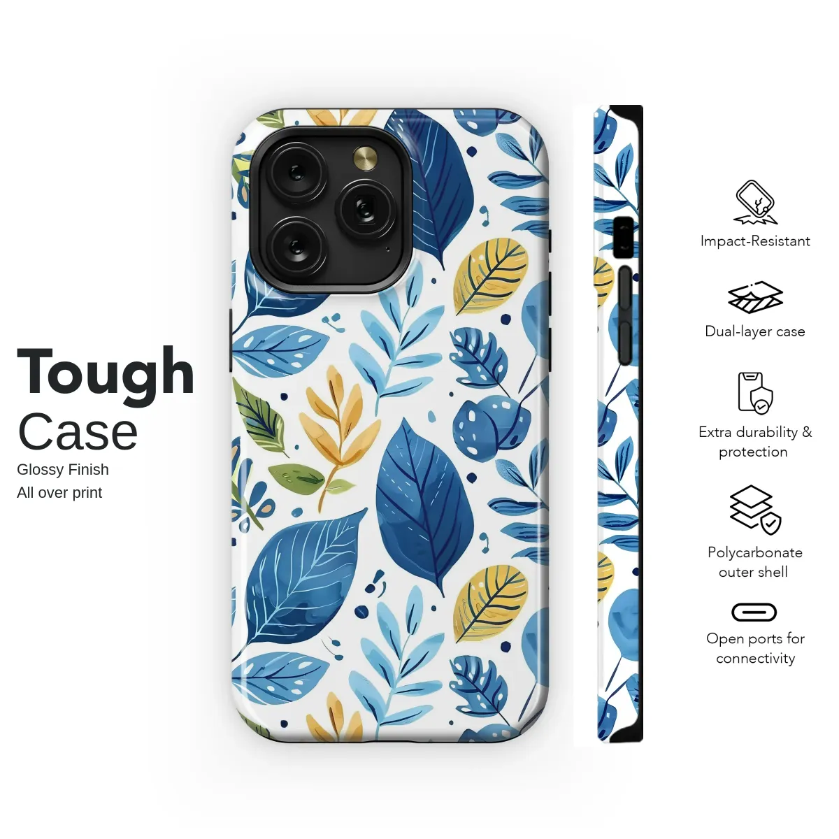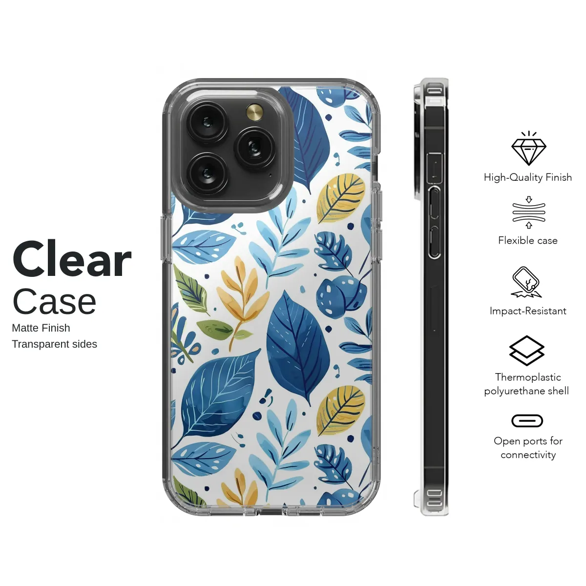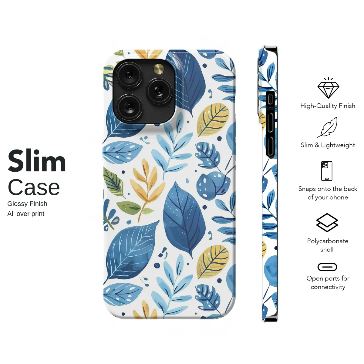Modern Blue Botanical Leaf Pattern Phone Case Cover for iPhone 17 Pro Max 16 15 Plus 14 13 Mini SE Samsung S25 S24 Google Pixel 10 9 9264