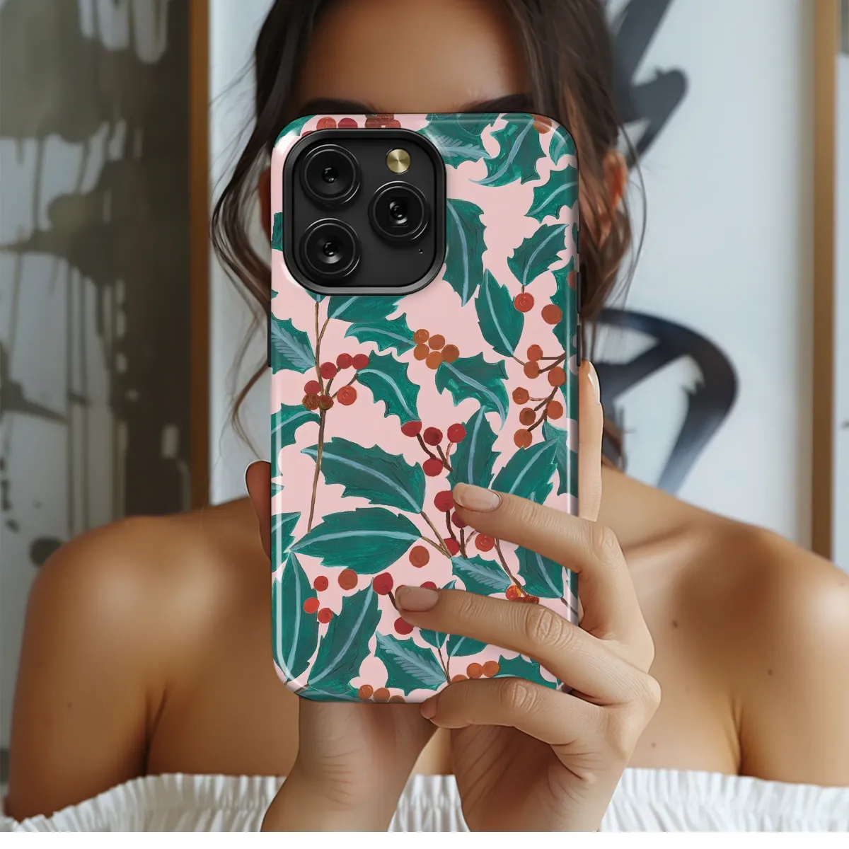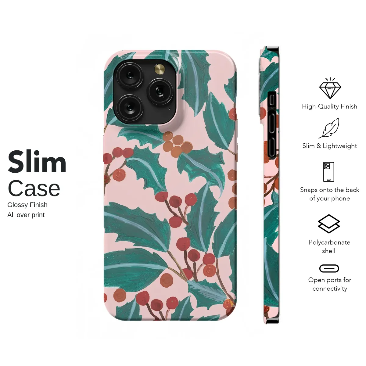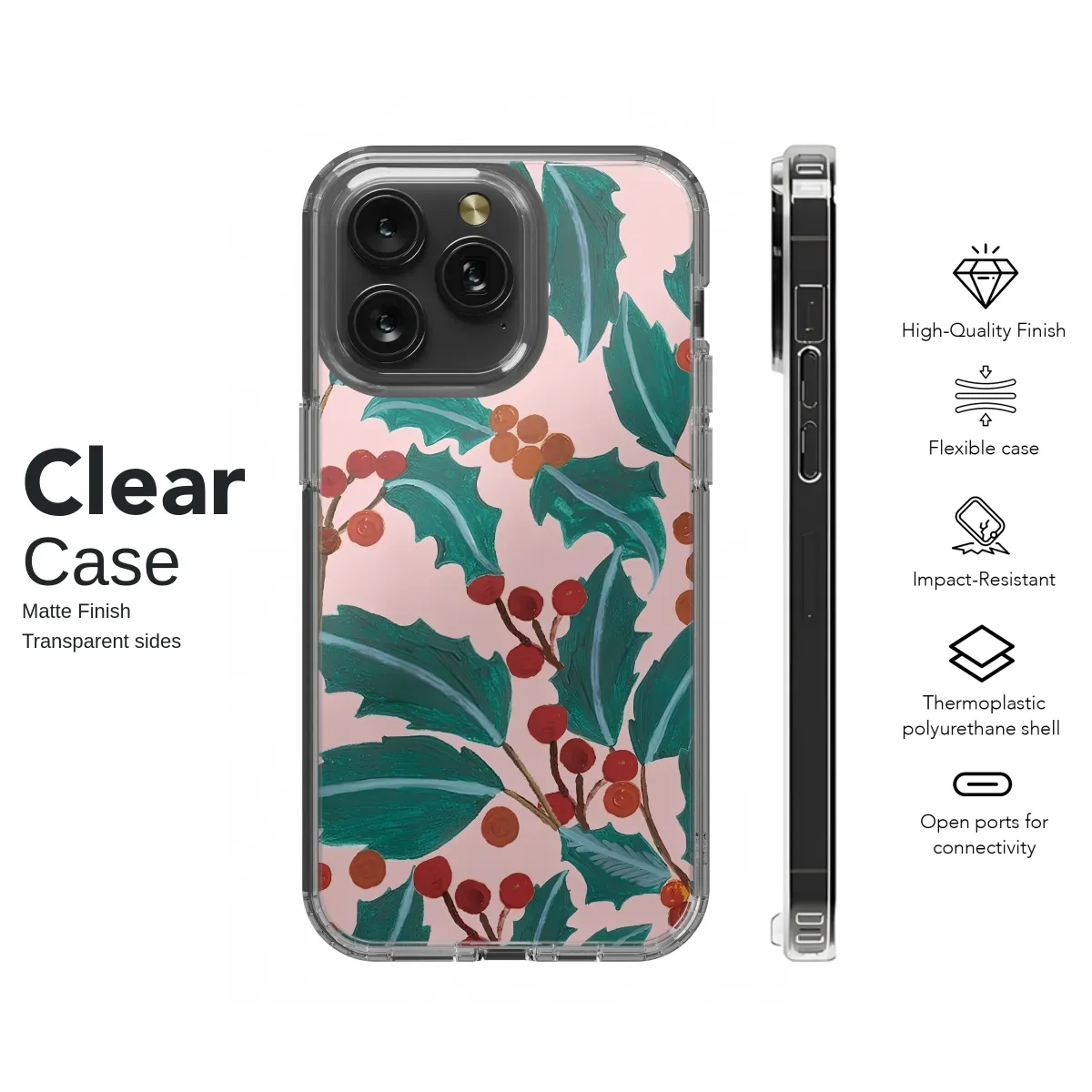Painterly Christmas Holly Berry Botanical Print Phone Case Cover for iPhone 17 Pro Max 16 15 Plus 14 13 Mini Samsung S25 S24 Pixel 10 9 8645
