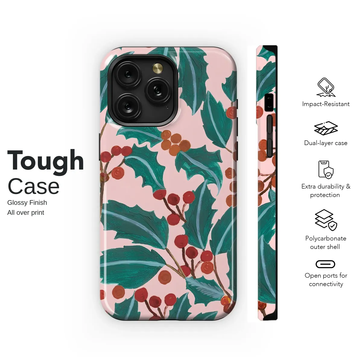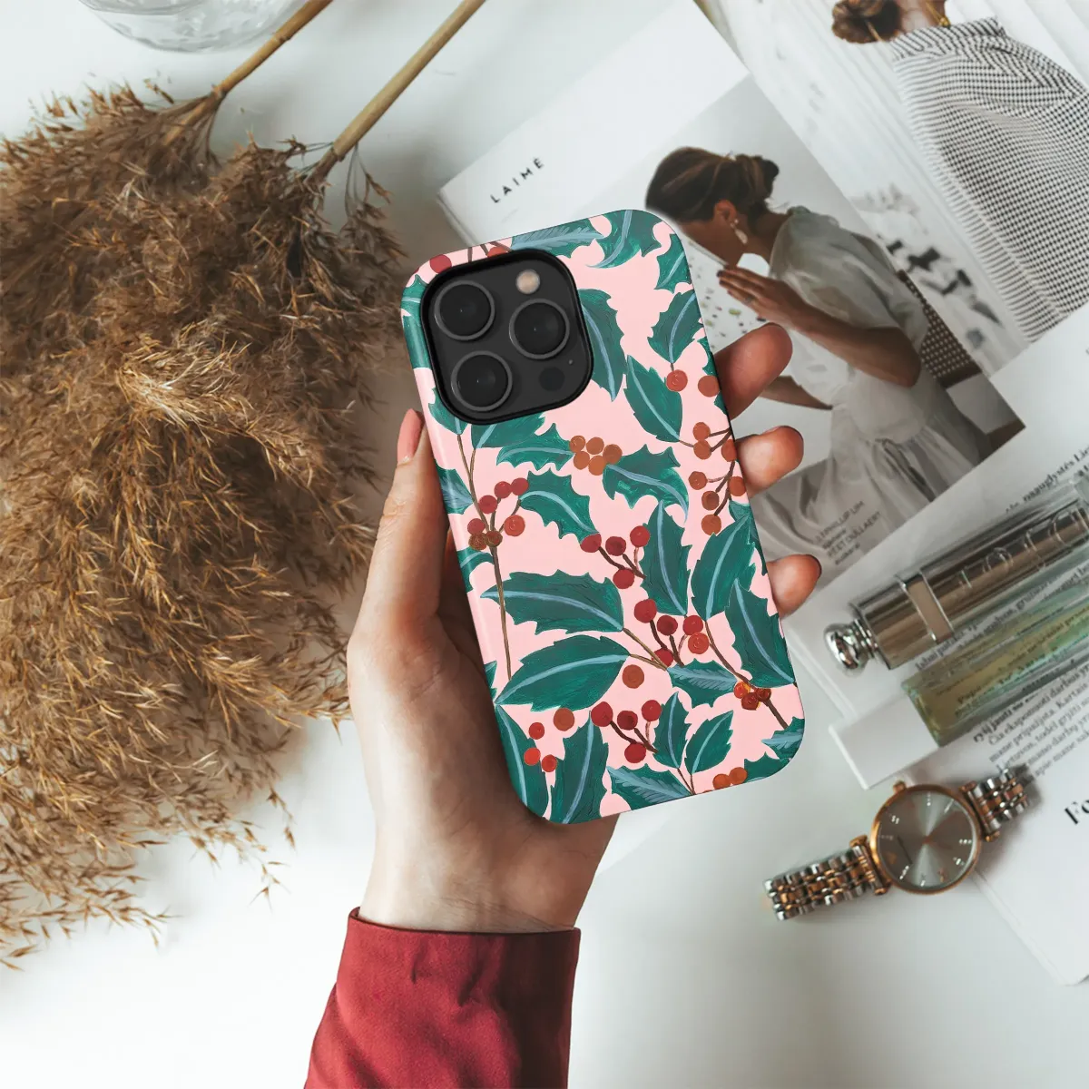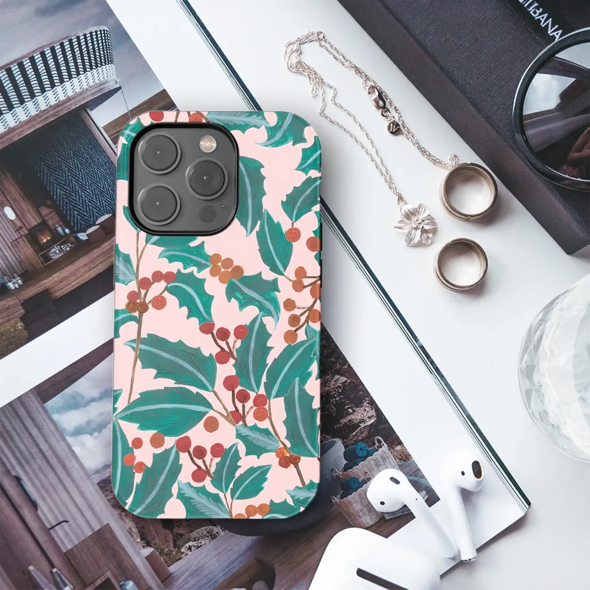 Painterly Christmas Holly Berry Botanical Print Phone Case Cover for iPhone 17 Pro Max 16 15 Plus 14 13 Mini Samsung S25 S24 Pixel 10 9 8645 - Image 1