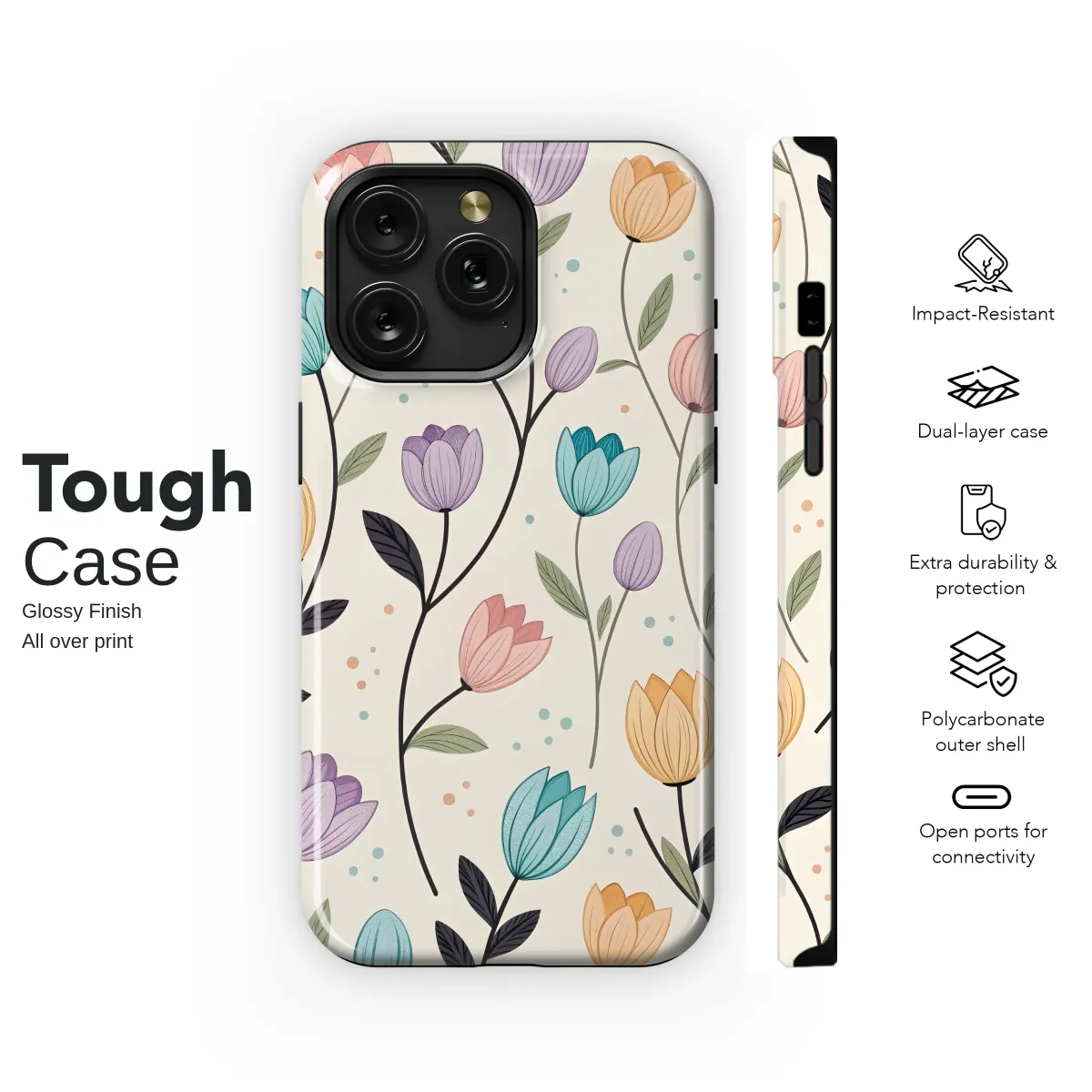 Pastel Wildflower Garden Art Botanical Tulip Print Phone Case Cover for iPhone 17 Pro Max 16 15 13 Samsung S25 S24 Pixel 9375 - Image 1