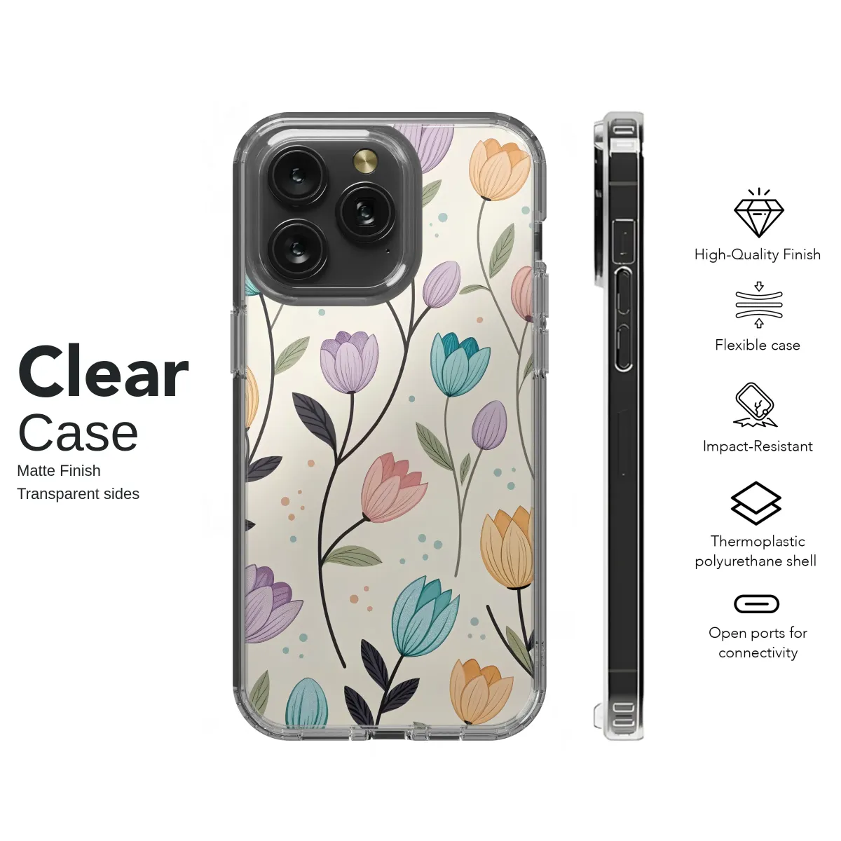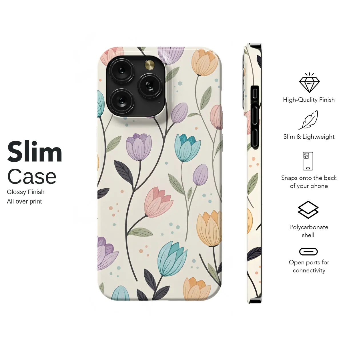 Pastel Wildflower Garden Art Botanical Tulip Print Phone Case Cover for iPhone 17 Pro Max 16 15 13 Samsung S25 S24 Pixel 9375