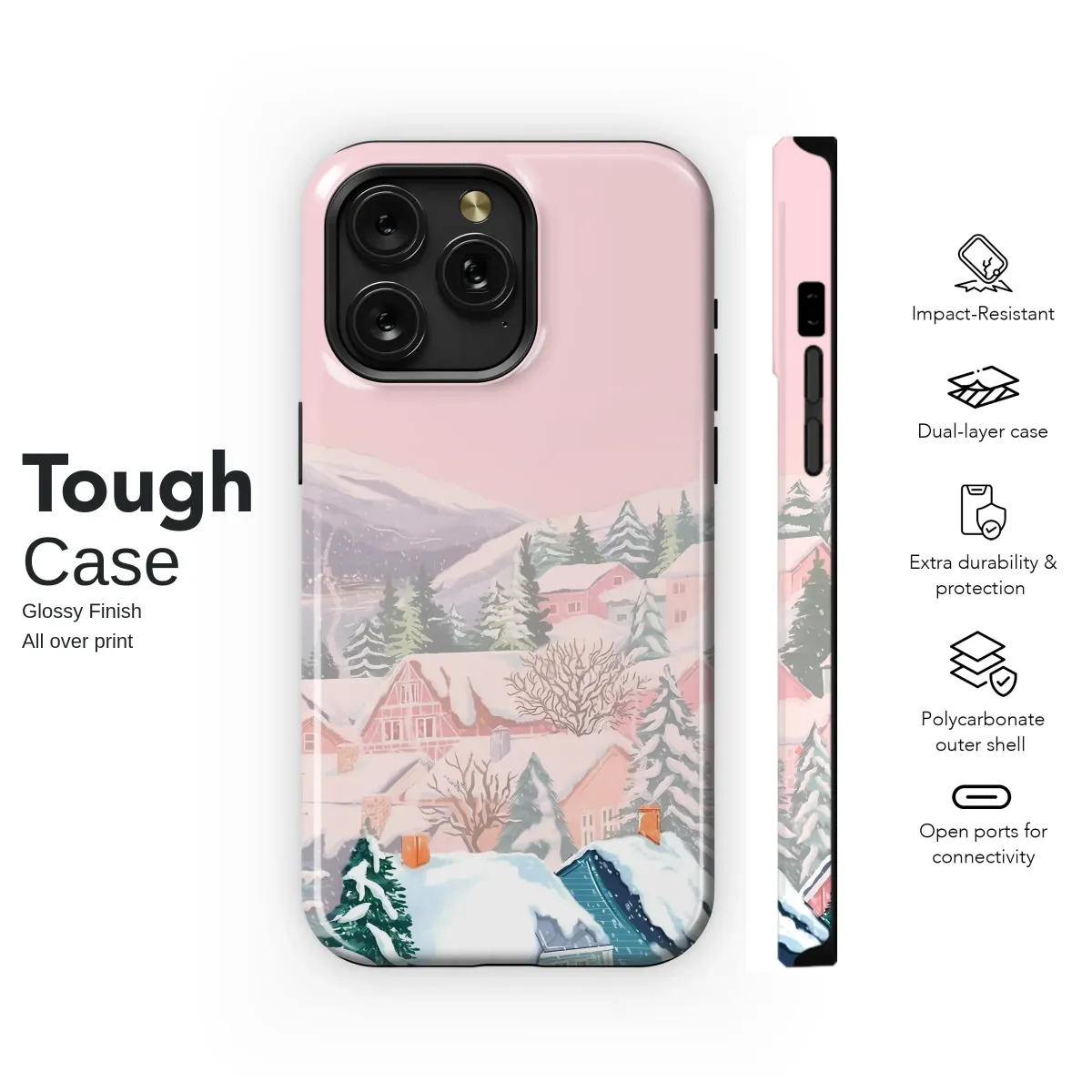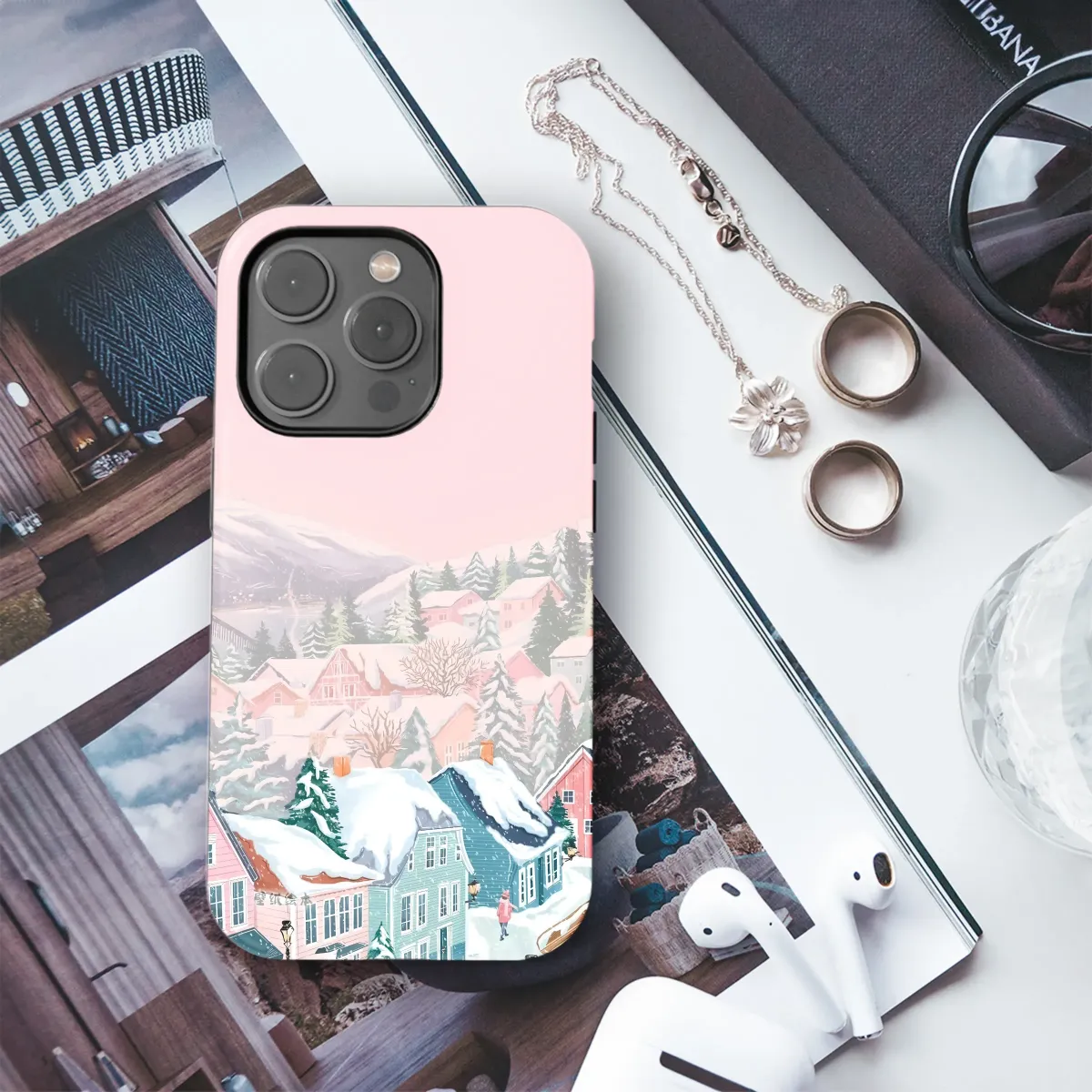Pastel Winter Village Snowy Landscape Illustration Phone Case Cover for iPhone 17 Pro Max 16 15 13 Samsung S25 S24 Pixel 8835 - Image 1