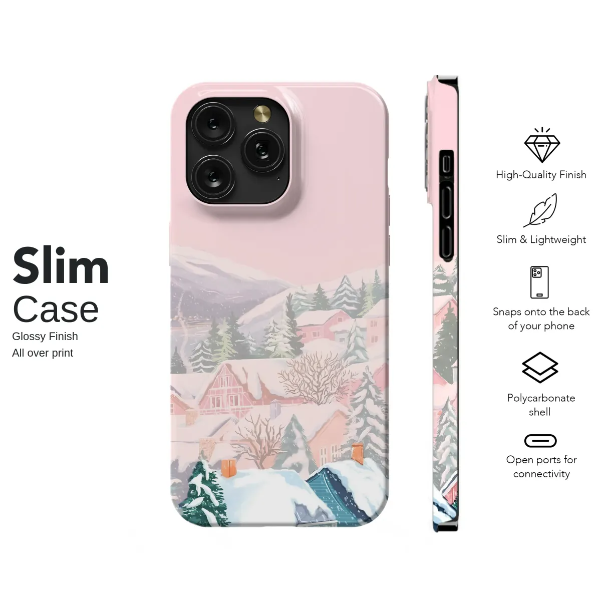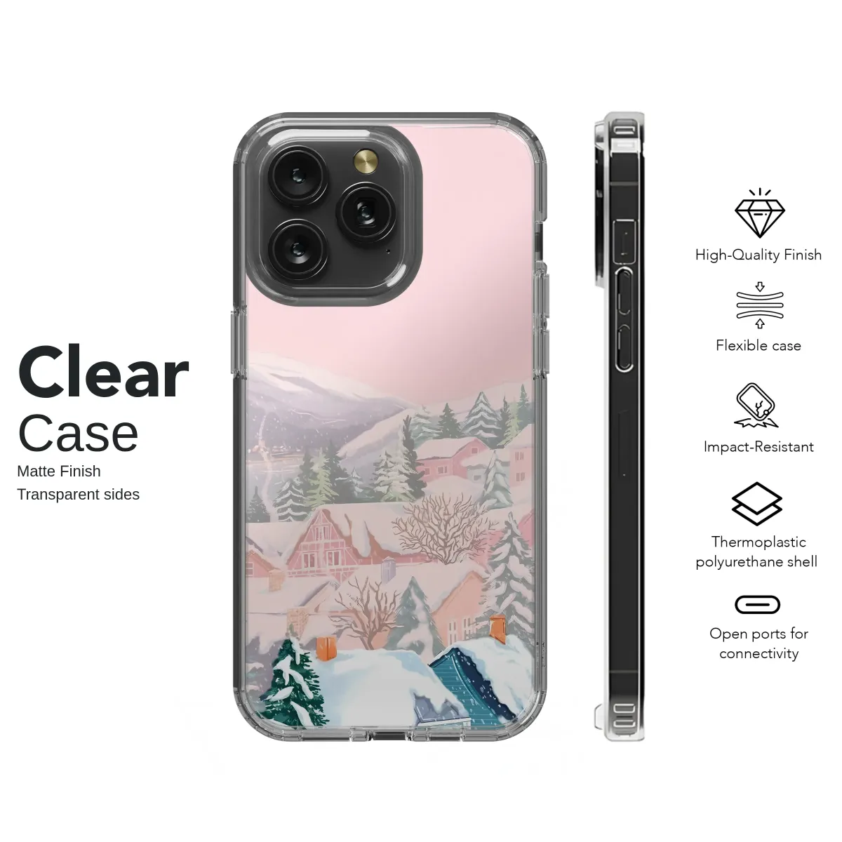 Pastel Winter Village Snowy Landscape Illustration Phone Case Cover for iPhone 17 Pro Max 16 15 13 Samsung S25 S24 Pixel 8835