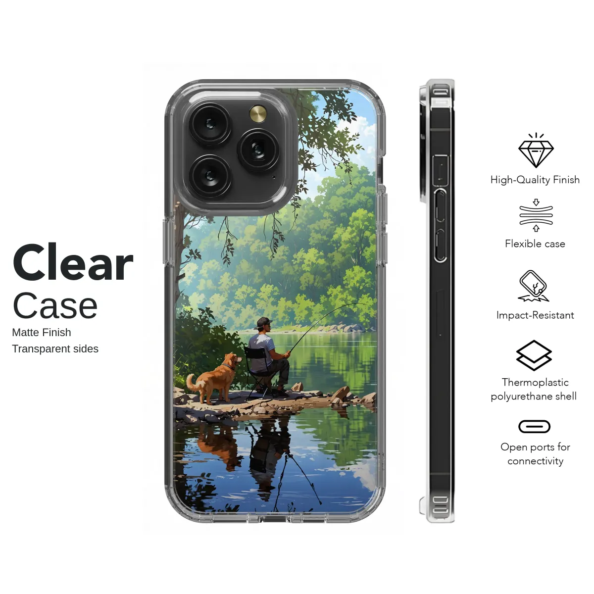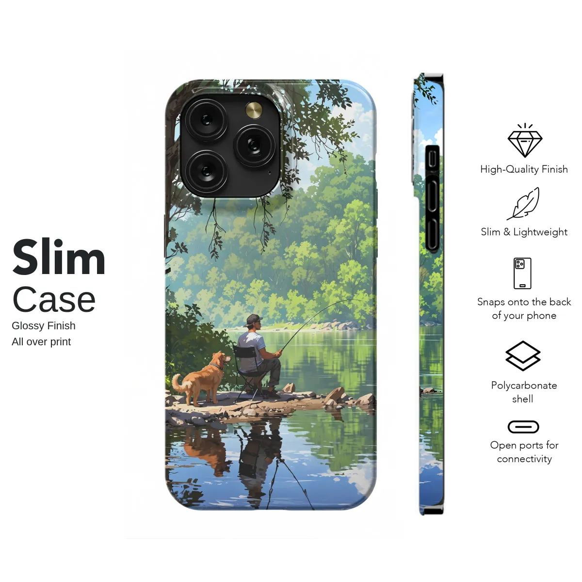 Peaceful Lakeside Fishing Man and Dog Painting Phone Case Cover for iPhone 17 Pro Max 16 15 Plus 14 13 Mini Samsung S25 S24 Pixel 10 9 9164