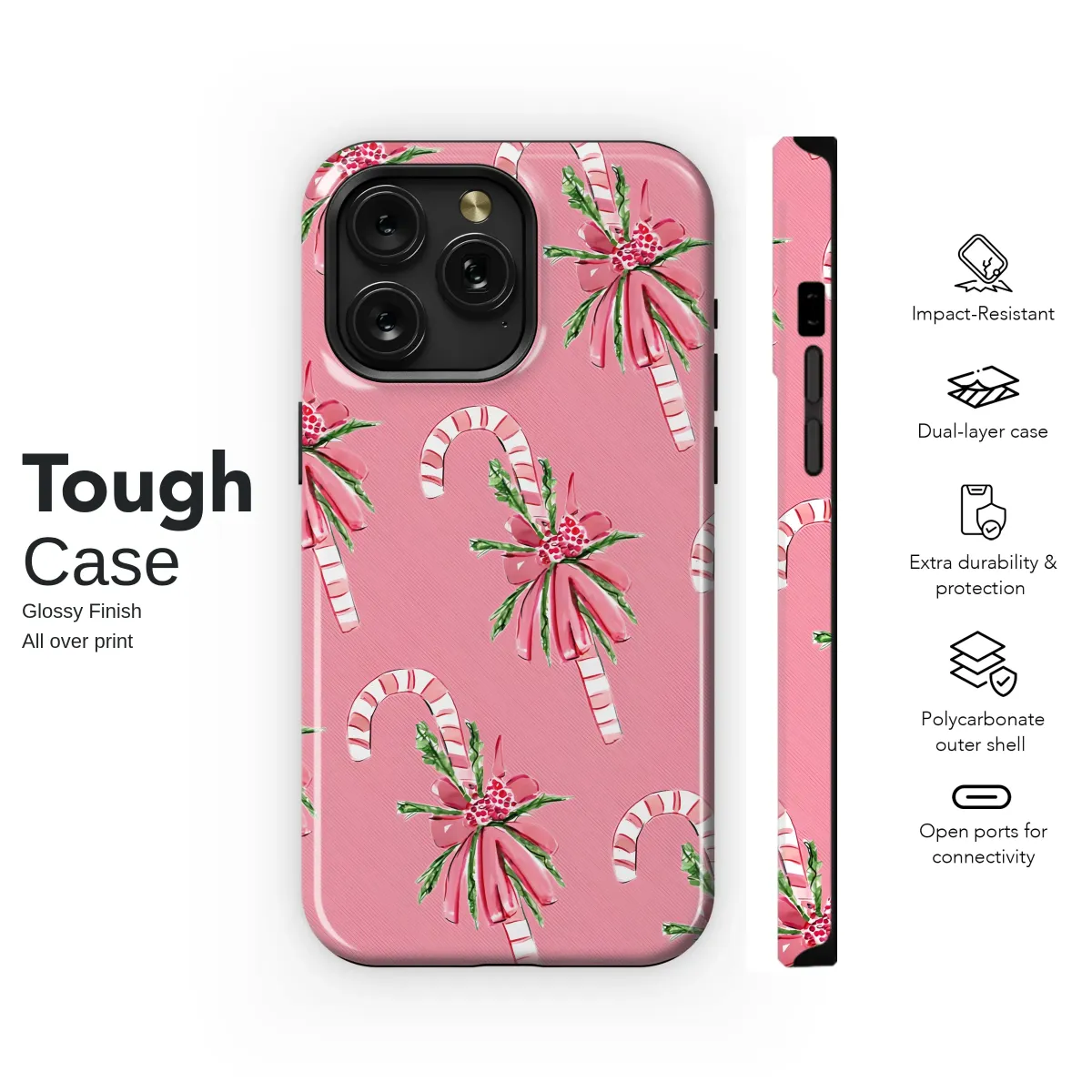 Pink Christmas Candy Cane Holiday Design Phone Case Cover for iPhone 17 Pro Max 16 15 Plus 14 13 Mini Samsung S25 S24 Google Pixel 10 9 8526