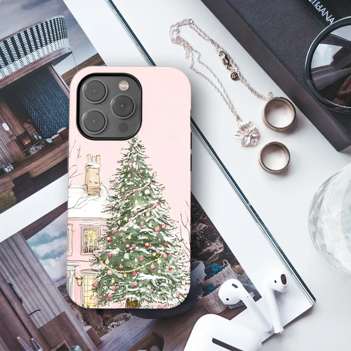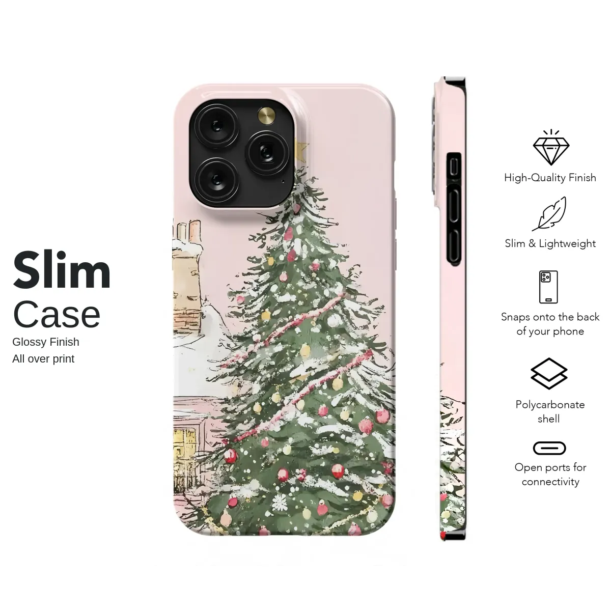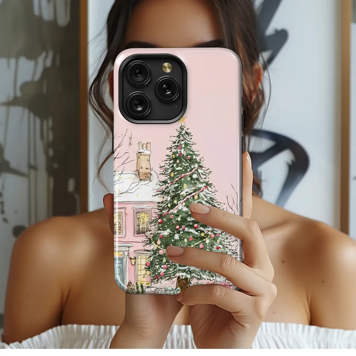 Pink Christmas House Snowy Holiday Illustration Phone Case Cover for iPhone 17 Pro Max 16 15 Plus 14 13 Mini Samsung S25 S24 Pixel 10 9 8843