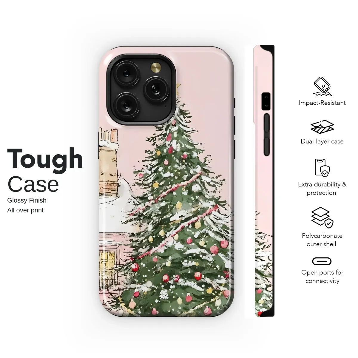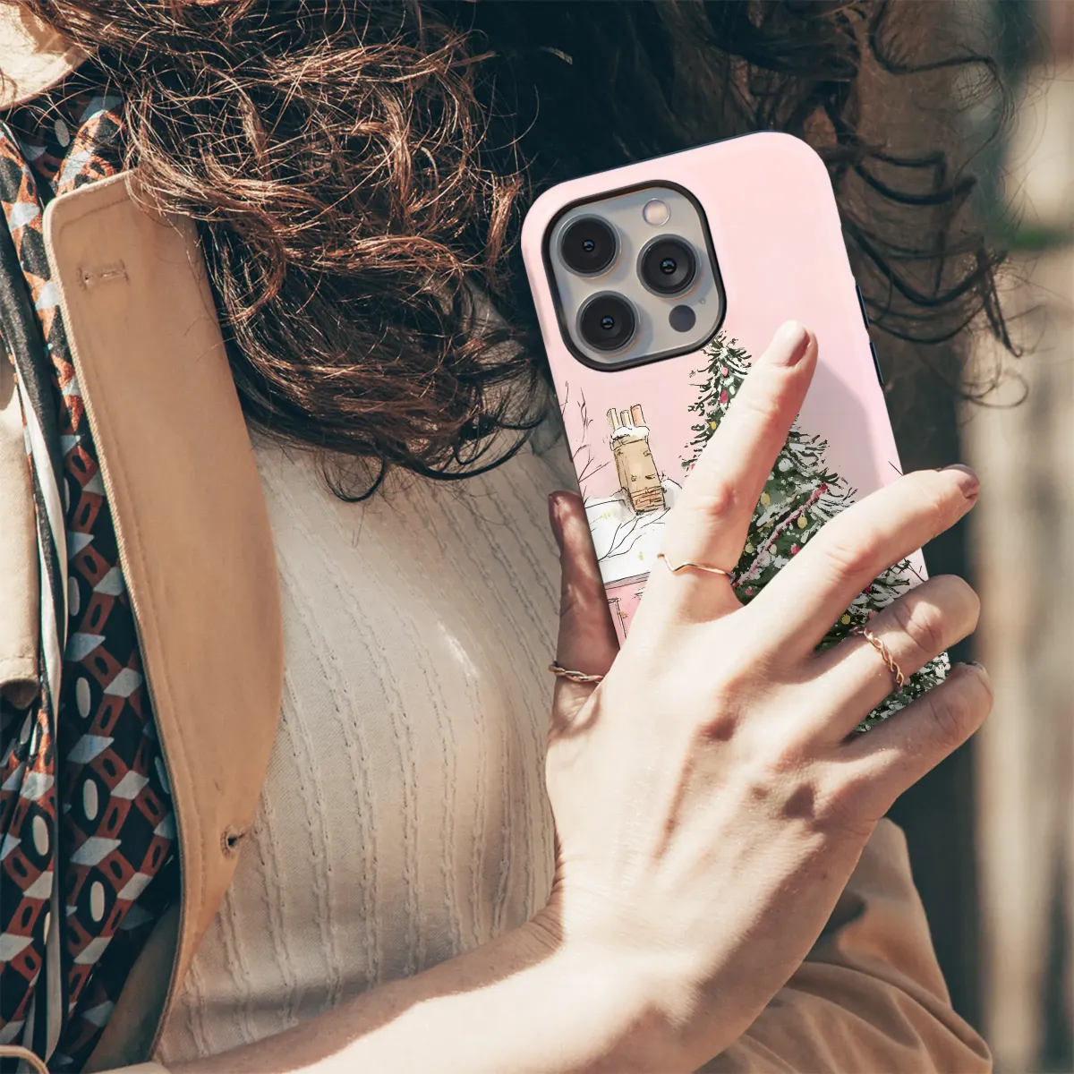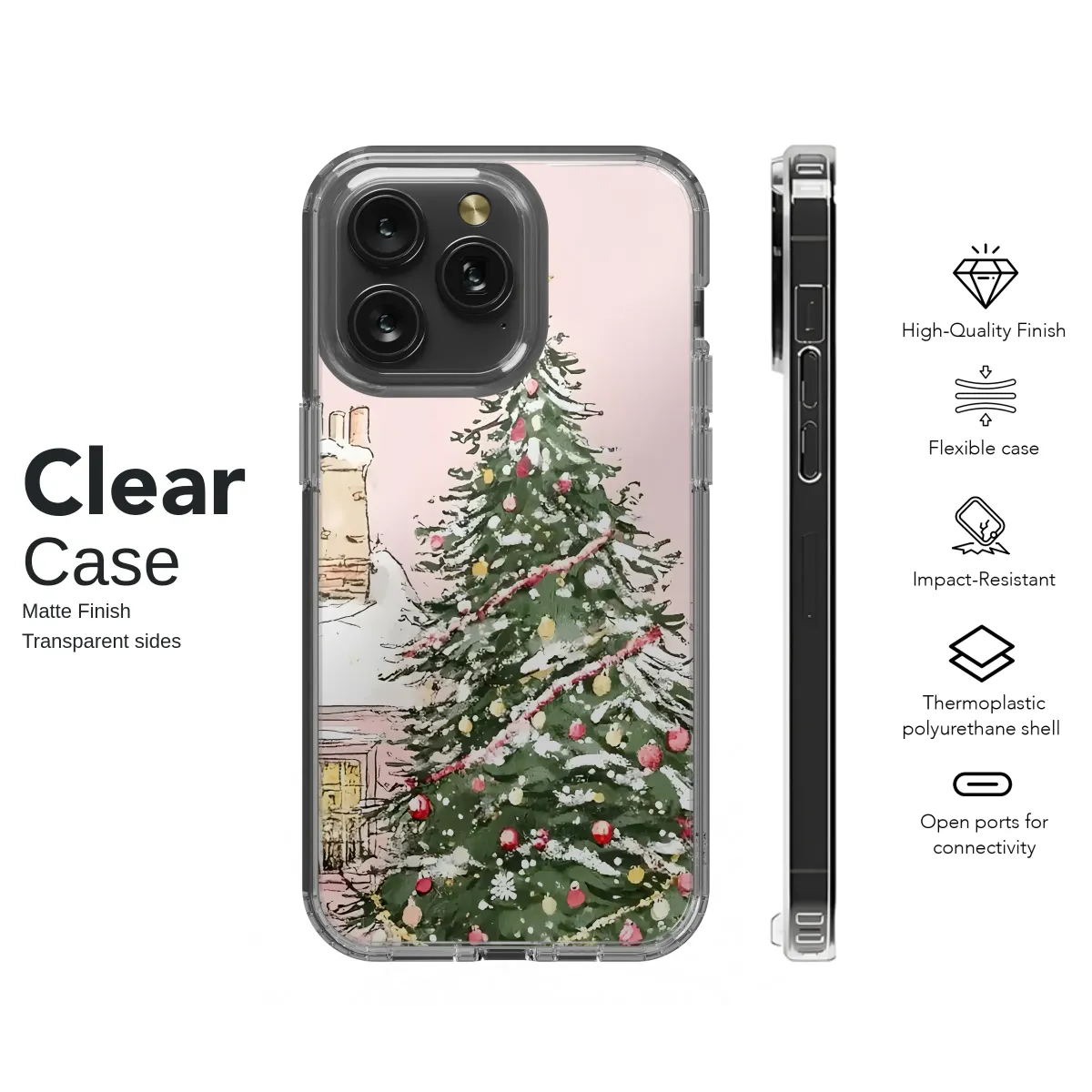 Pink Christmas House Snowy Holiday Illustration Phone Case Cover for iPhone 17 Pro Max 16 15 Plus 14 13 Mini Samsung S25 S24 Pixel 10 9 8843