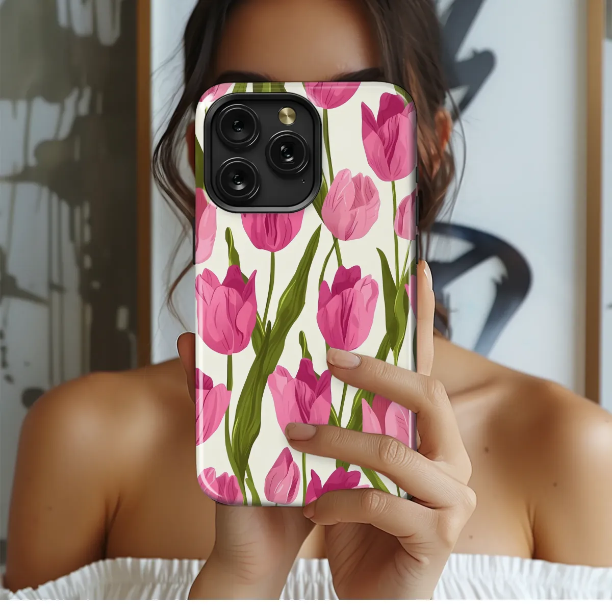 Pink Tulip Floral Pattern Botanical Garden Art Phone Case Cover for iPhone 17 Pro Max 16 15 Plus 14 13 Mini Samsung S25 S24 Pixel 10 9 8796