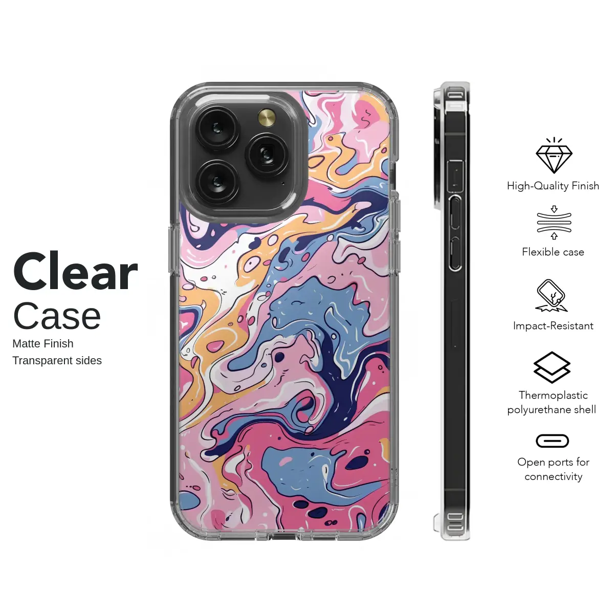 Immerse your style in a wave of vibrant color with this dynamic liquid art design. Featuring a groovy, psychedelic swirl of hot pink, cool blue, sunny yellow, and deep navy, this abstract pattern is full of movement and energy. The bold black outlines give it a pop art feel, making it a standout piece for anyone who loves retro aesthetics and unique, eye-catching artwork.
