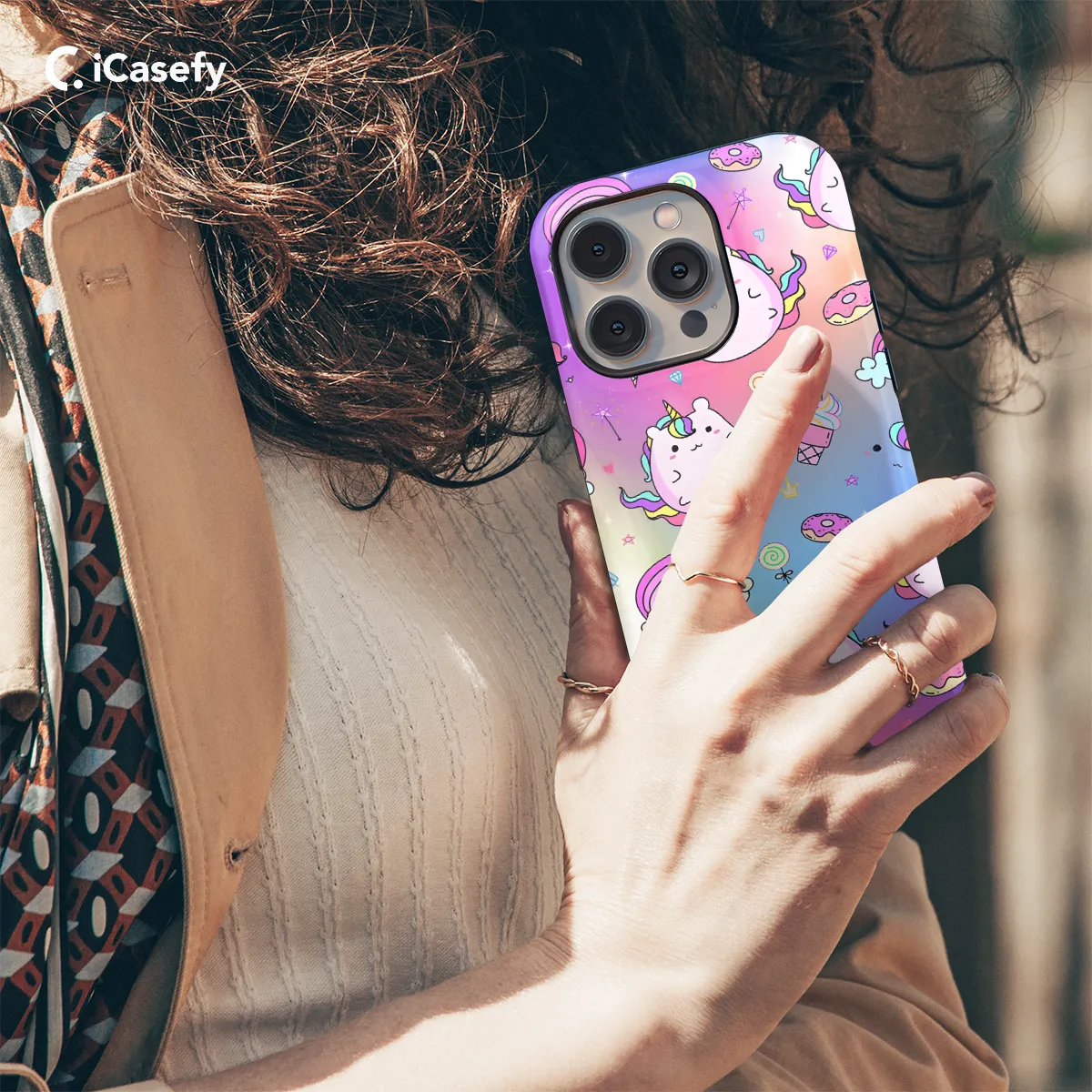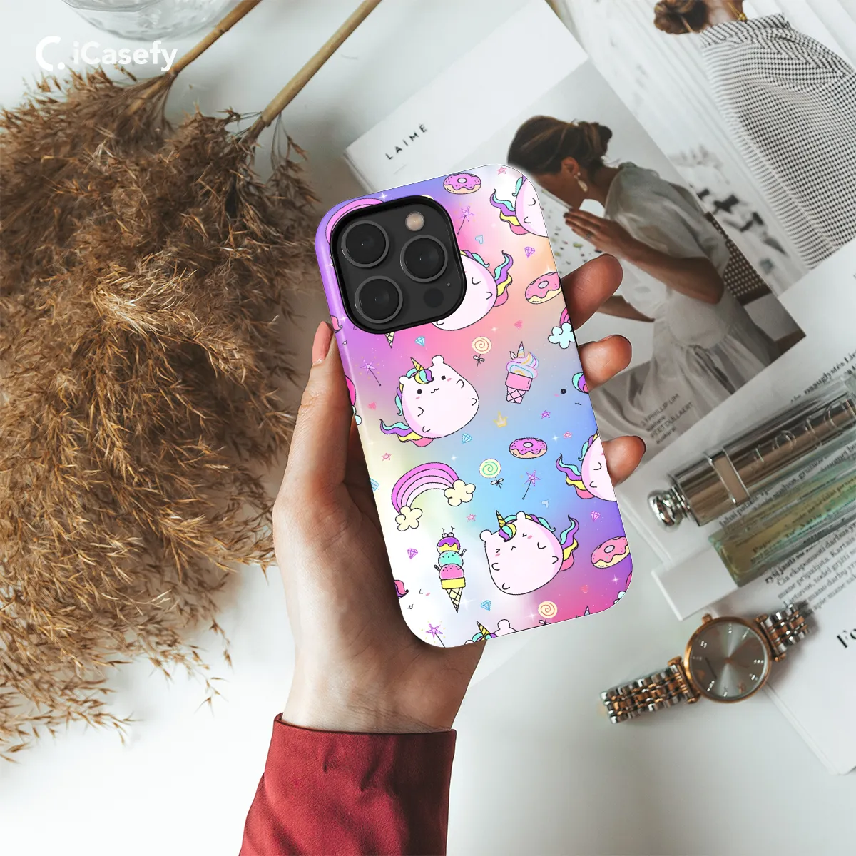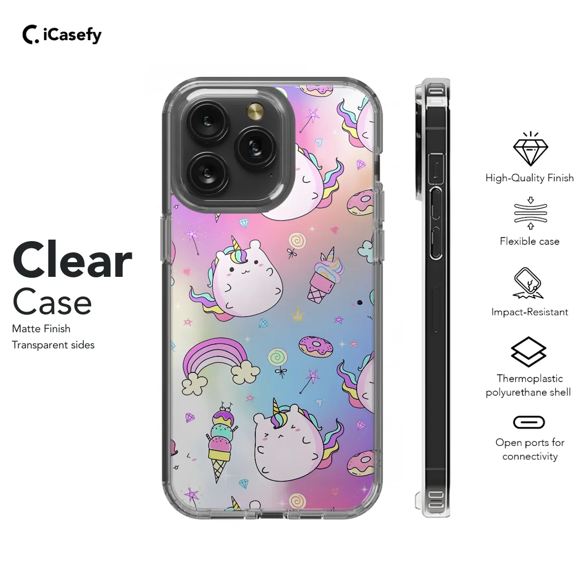 Fun and whimsical, this Rainbow Ice Cream Unicorn Phone Case is the perfect way to add a touch of magic to your phone. The case features an adorable unicorn standing on top of an equally colorful ice cream cone, all against a vibrant rainbow background. Whether you're a unicorn lover, an ice cream enthusiast, or simply someone who loves to add a bit of whimsy to their life, this phone case is sure to bring a smile to your face every time you look at it.
