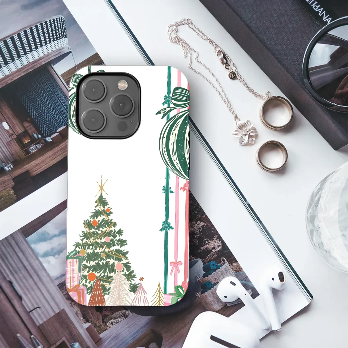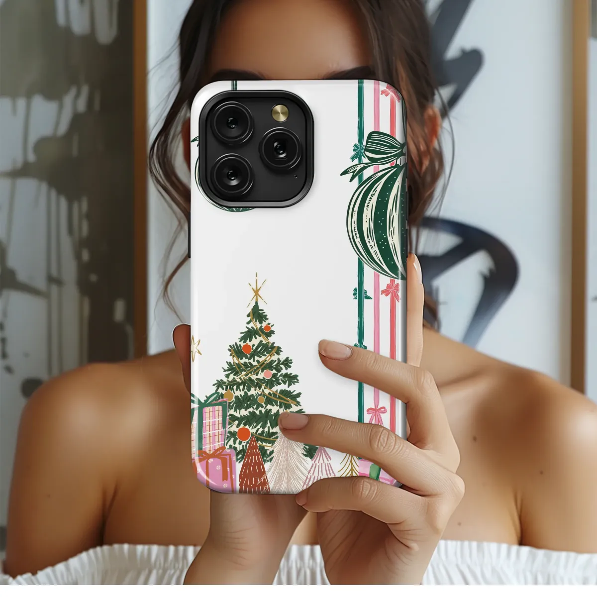 Retro Christmas Ornament and Holiday Tree Design Phone Case Cover for iPhone 17 Pro Max 16 15 13 Samsung S25 S24 Pixel 8795