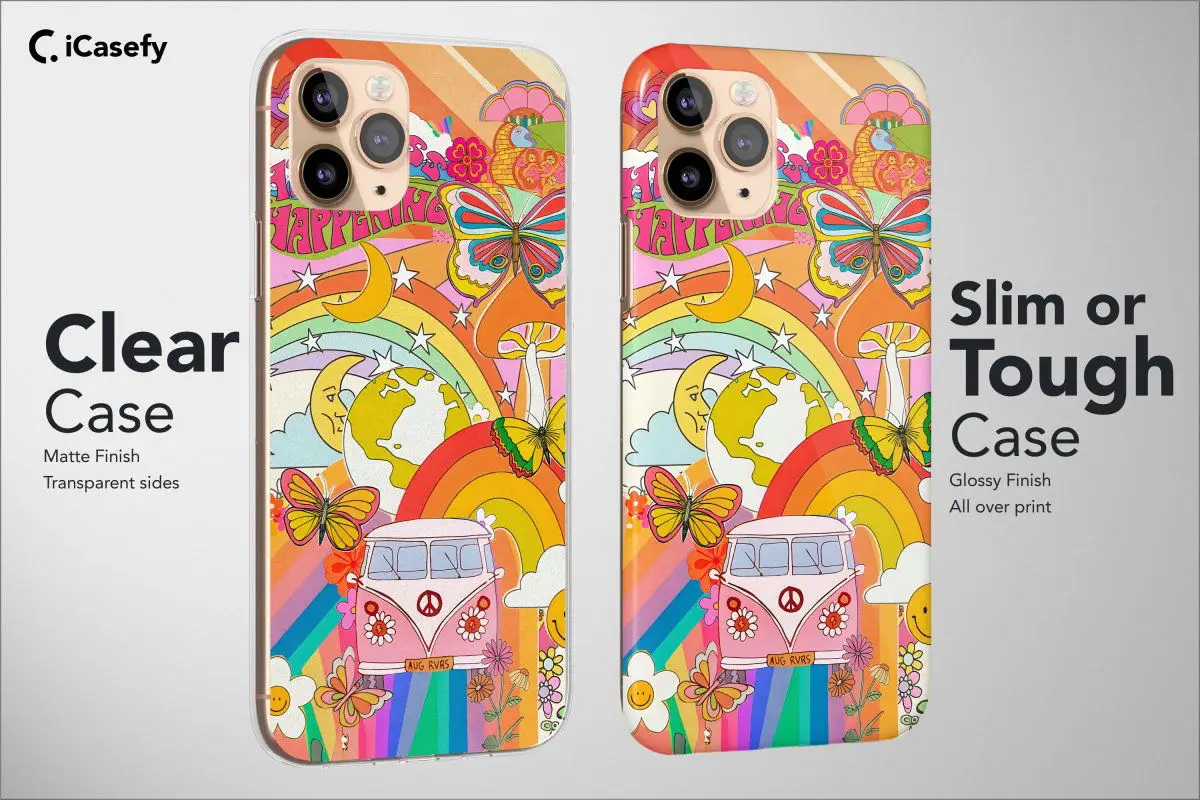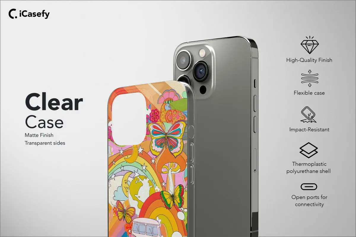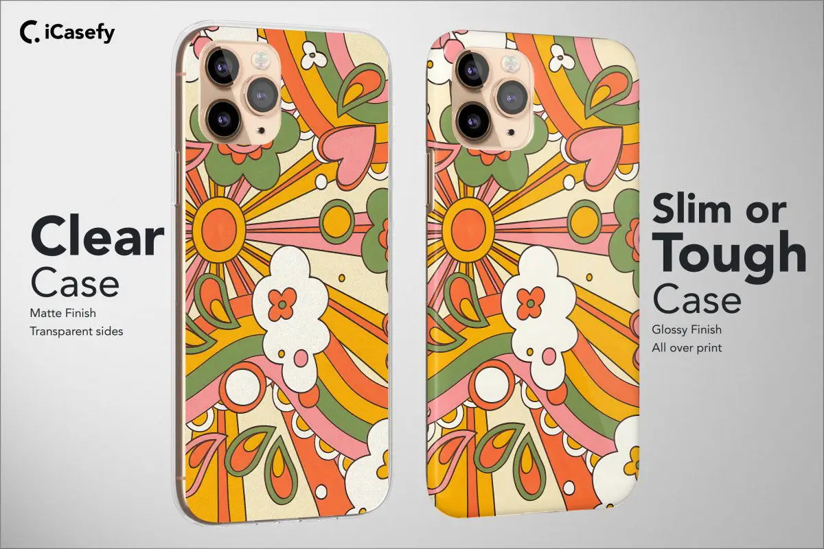 Step back in time with our Retro Groovy Phone Case, a vibrant homage to the hippie era's flower power and psychedelic vibes. Adorned with mesmerizing floral patterns and rainbow hues, this trippy cover adds a burst of color and nostalgia to your device. Embrace your free-spirited side and groove to the rhythm of the past with this funky and vibrant accessory.
